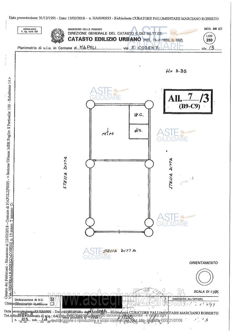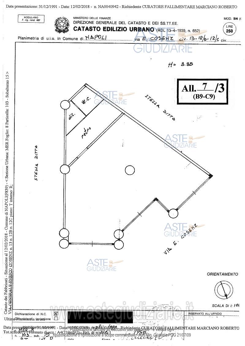 Vendita all'asta Senza incanto - LOTTO C 7: Lotto C Lotto n.7: Unità immobiliare della superficie catastale di mq. 143 a destinazione commerciale nel fabbricato in Napoli alla Via E. Cosenz 13. LE VISITE DEGLI IMMOBILI DA CONCORDARE CON IL CURATORE, SARANNO EFFETTUATE NELLE GIORNATE DEL: 10 SETTEMBRE 2025, 22 SETTEMBRE 2025, 6 OTTOBRE 2025, 20 OTTOBRE 2025, 10 NOVEMBRE 2025 CON PRENOTAZIONE DA EFFETTUARSI PRESSO LO STUDIO DEL CURATORE EFFETTIVAMENTE ENTRO IL: 4 SETTEMBRE 2025, 15 SETTEMBRE 2025, 29 SETTEMBRE 2025, 13 OTTOBRE 2025, 4 NOVEMBRE 2025. Prezzo base € 43.875,00 (offerta minima € 32.906,25). Data vendita 13/11/2025 ore 12:00. Giudice Dott. Francesco Paolo Feo. Curatore Dott. Roberto Marciano - Email "roberto.marciano@ass-com.it"; Tel. 0817641865. Rif. Tribunale di Napoli - Fallimentare n. 361/2002
