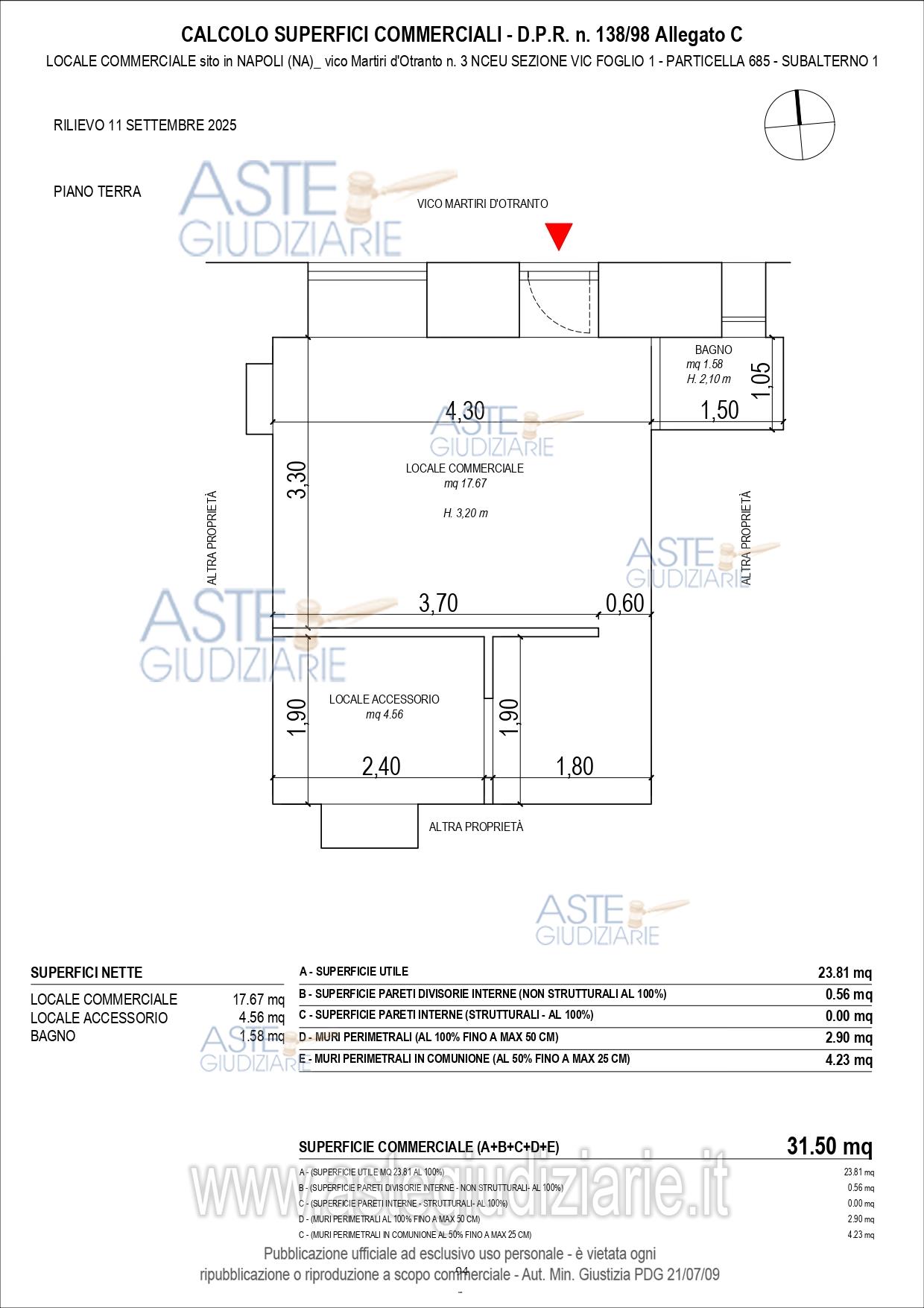 Vendita all'asta Senza incanto, con gara telematica asincrona - LOTTO UNICO: Piena ed intera proprietà di un immobile commerciale composto da locale terraneo con ingresso e vetrina su strada, con annesso locale accessorio e bagno. Presenti alcuni abusi sanabili come descritti nella perizia di stima. Superficie commerciale ca mq 31,50, superficie utile ca. mq 23,81. Occupato senza titolo dai familiari dell'esecutato. Prezzo base € 59.000,00 (offerta minima € 44.250,00). Data inizio operazioni di vendita: 26/05/2026 ore 14:30. Giudice Dott. Margherita Lojodice. Professionista delegato alla vendita Avv. Giulia Devoti - Email "avv.giuliadevoti@gmail.com"; Cell. 3382822211; Tel. 0815517791. Custode Giudiziario Avv. Giulia Devoti - Email "avv.giuliadevoti@gmail.com"; Cell. 3382822211; Tel. 0815517791. Rif. Tribunale di Napoli - Espropriazione immobiliare (cartabia) n. 562/2024