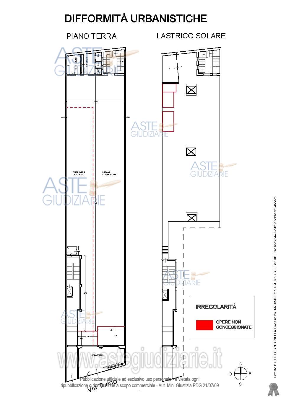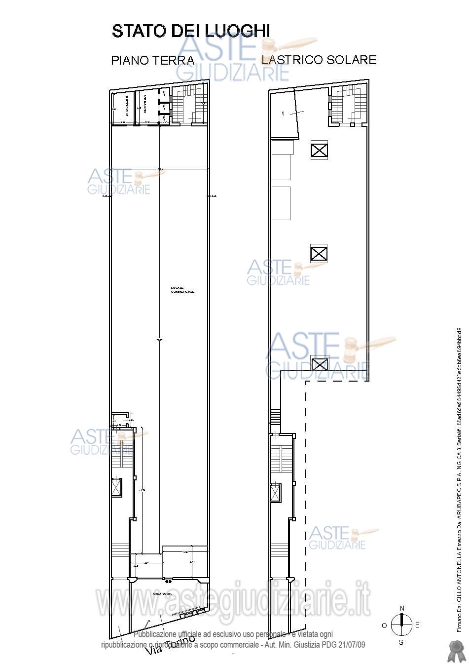Vendita all'asta Senza incanto, con gara telematica asincrona - LOTTO UNICO: Locale commerciale al piano terra, con retrostante zona a cortile e antistante area scoperta pertinenziale nonché con sovrastante lastrico solare di esclusiva pertinenza di circa mq. 300. Prezzo base € 99.470,00 (offerta minima € 74.603,00). Data inizio operazioni di vendita: 25/09/2026 ore 17:00. Giudice: Dott. Antonio Ruffino.