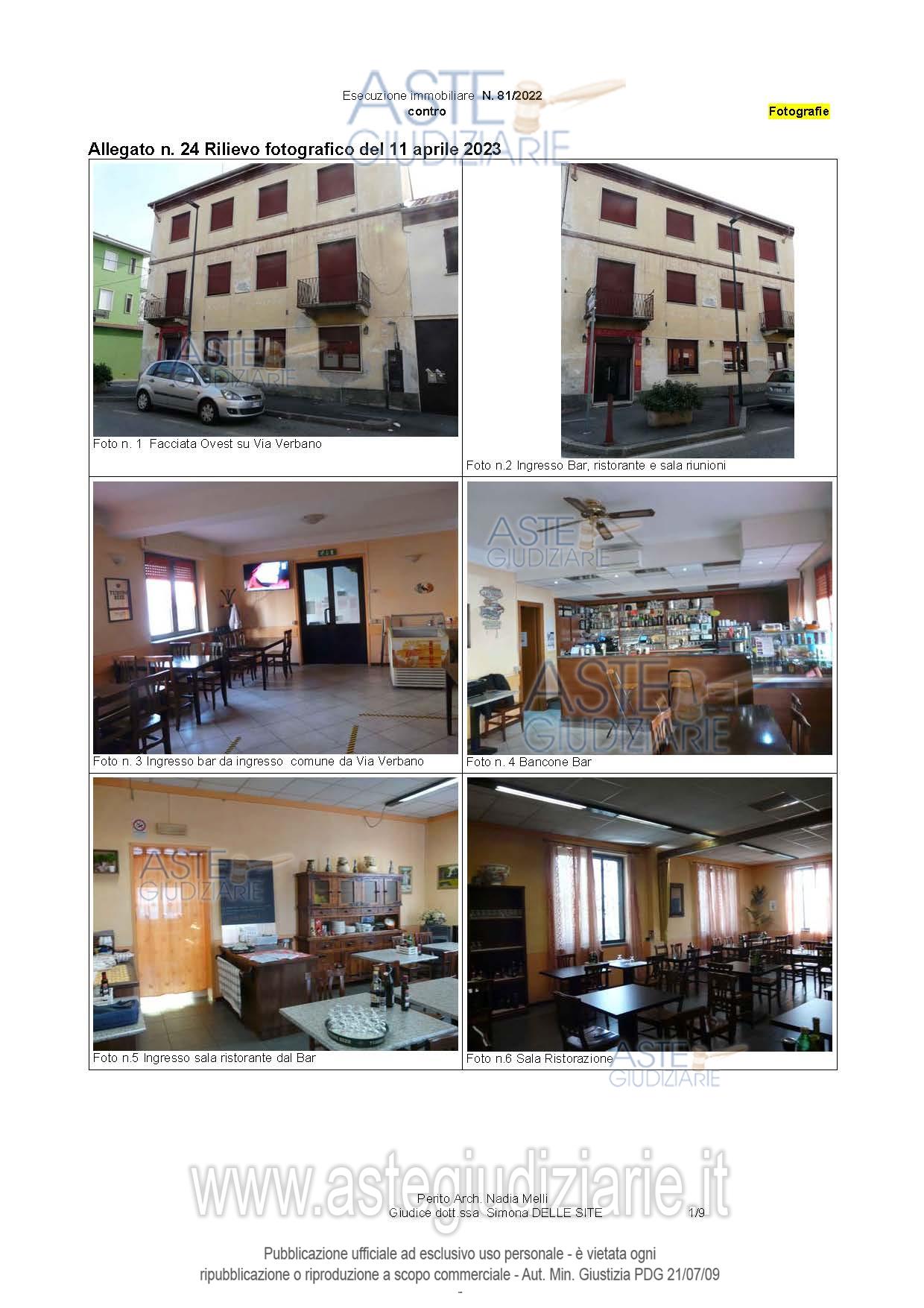 Vendita all'asta Competitiva, con gara telematica asincrona - LOTTO UNICO: Piena proprietà di edificio commerciale su quattro livelli. Al piano terra bar-ristorante in esercizio, al primo piano salone con annessi tre vani, al piano secondo due vani con annessi bagno e corridoio di disimpegno, al piano interrato cantina a servizio del bar-ristorante. Prezzo base € 132.000,00 (offerta minima € 99.000,00). Data inizio operazioni di vendita: 10/12/2025 ore 12:00. Professionista delegato alla vendita Avv. Paolo Borgna - Email "segreteria@studiolegaleborgna.it"; Tel. 032135388. Custode Giudiziario Ifir Piemonte Ivg Srl - Email "richiestevisite.novara@ivgpiemonte.it"; Tel. 0321628676. Rif. Tribunale di Novara - Esecuzione immobiliare post legge 80 n. 81/2022