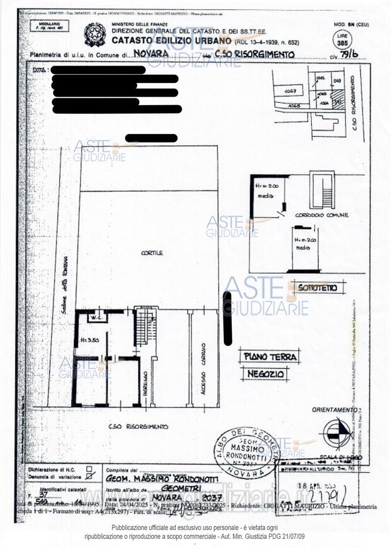 Vendita all'asta Senza incanto, con gara telematica asincrona - LOTTO UNICO: Piena proprietà per la quota di 1/1 di un negozio e di una rimessa entrambi siti al piano terra e inseriti nel complesso condominiale denominato “Condominio Corso Risorgimento 79/b”. Prezzo base € 66.720,00 (offerta minima € 50.040,00). Data inizio operazioni di vendita: 29/04/2026 ore 12:00. Giudice Dott. Rossella Incardona. Professionista delegato alla vendita Dott. Anna Burlotto. Custode Giudiziario Lorenzo Vigone - Email "richiestevisite.novara@ivgpiemonte.it". Rif. Tribunale di Novara - Espropriazione immobiliare (cartabia) n. 103/2024