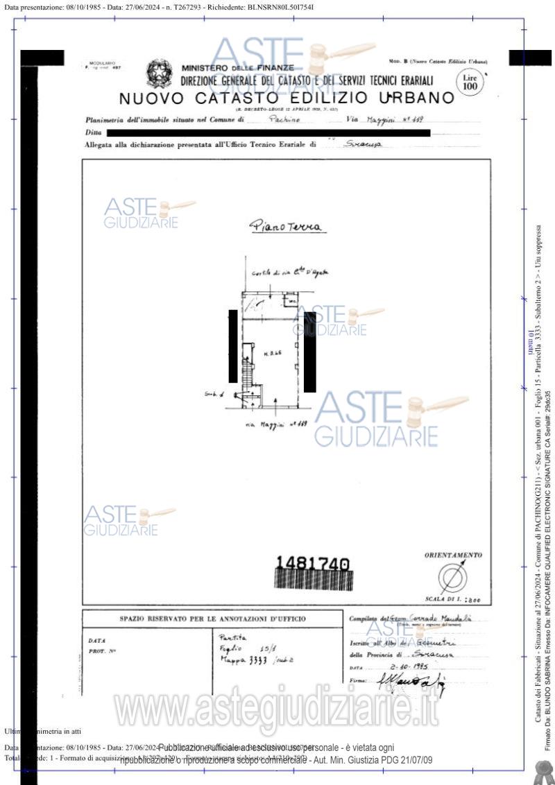 Vendita all'asta Senza incanto, con gara telematica sincrona mista - LOTTO 2: Basso commerciale sito in Pachino, via Mazzini 121, piano T, distinto al Catasto dei Fabbricati al Fg. 15, P.lla 3333, sub 2 cat C/1 di 59 mq. Prezzo base € 35.907,90 (offerta minima € 26.931,00). Data vendita 19/12/2025 ore 13:00. Professionista delegato alla vendita Avv. Stella Messina - Email "stellamessina@alice.it"; Cell. 3397961479; Tel. 093168236. Custode Giudiziario Avv. Stella Messina - Email "stellamessina@alice.it"; Cell. 3397961479; Tel. 093168236. Rif. Tribunale di Siracusa - Espropriazione immobiliare (cartabia) n. 76/2024
