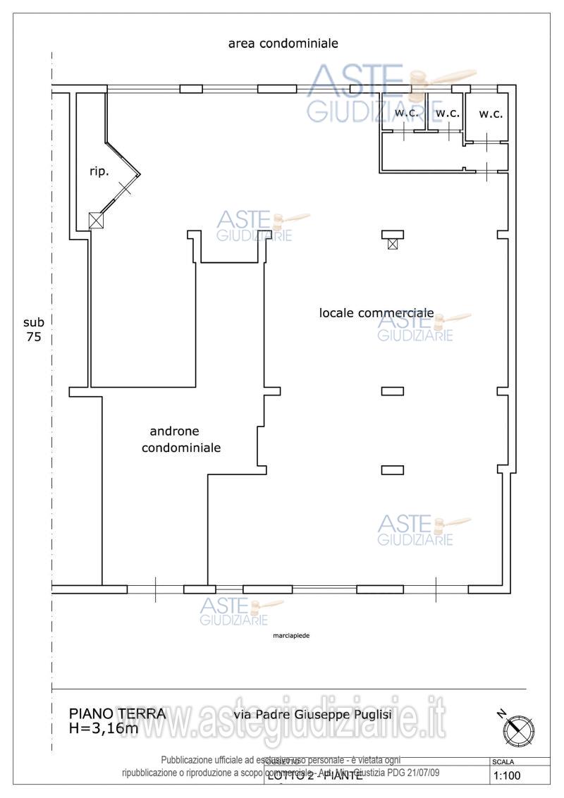 Vendita in attesa dell'emissione del nuovo bando d'asta. LOTTO 2: Locale commerciale sito in Palermo via Padre Giuseppe Puglisi n. 68-70 piano Terra, identificato al NCEU foglio di mappa 77 p.lla 3481 sub 76 cat. C/1, consistenza 223 mq, Rendita catastale € 4.111,56. Ultimo prezzo base € 129.404,00 (offerta minima € 97.053,00). Giudice Valentina Imperiale. Professionista delegato alla vendita Avv. Rosolino Fabrizio Giambona - Email "segreteria.studiolegalegiambona@gmail.com"; Tel. 0917743262. Custode Giudiziario Avv. Rosolino Fabrizio Giambona - Email "segreteria.studiolegalegiambona@gmail.com"; Tel. 0917743262. Rif. Tribunale di Palermo - Esecuzione immobiliare post legge 80 n. 443/2022