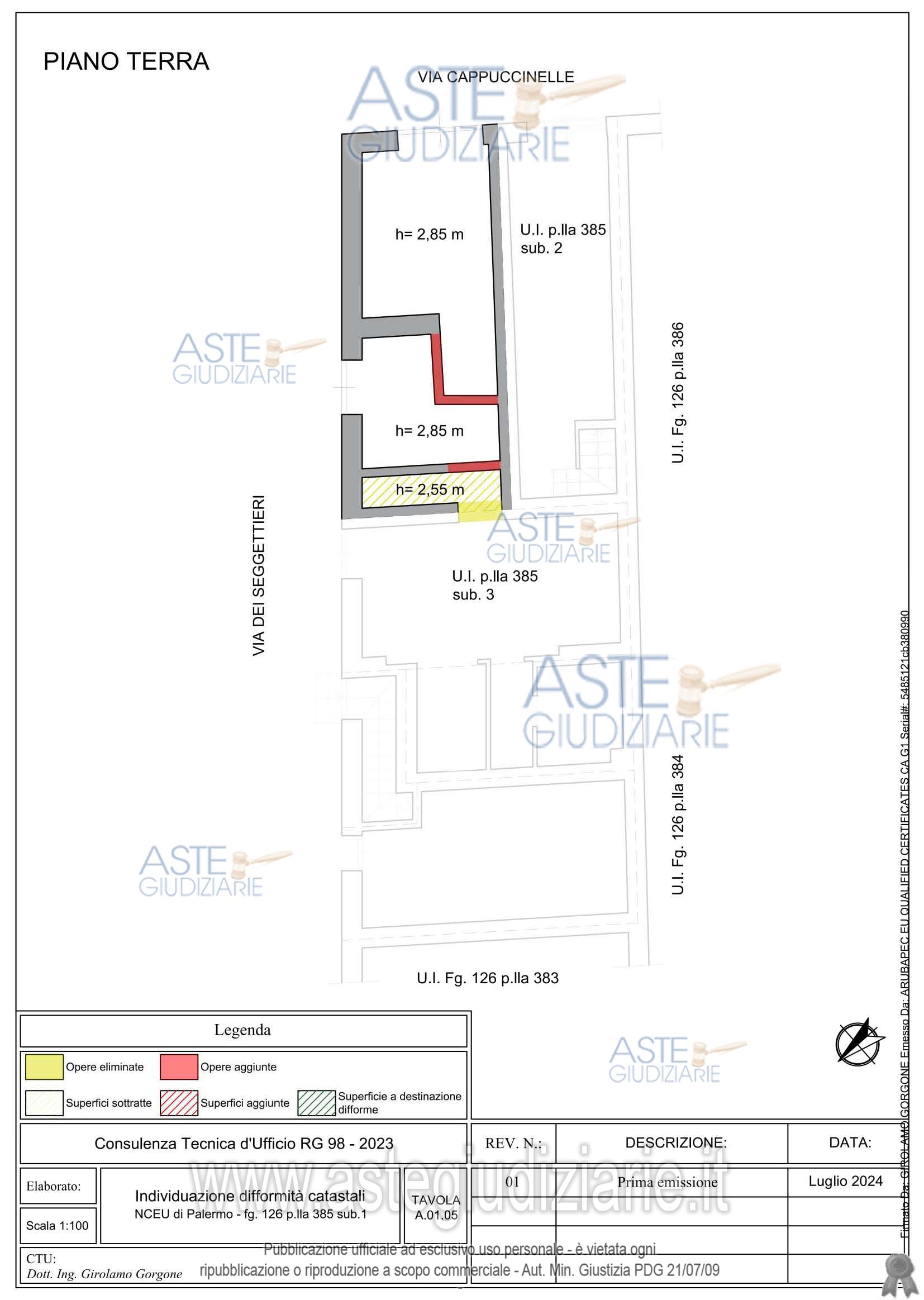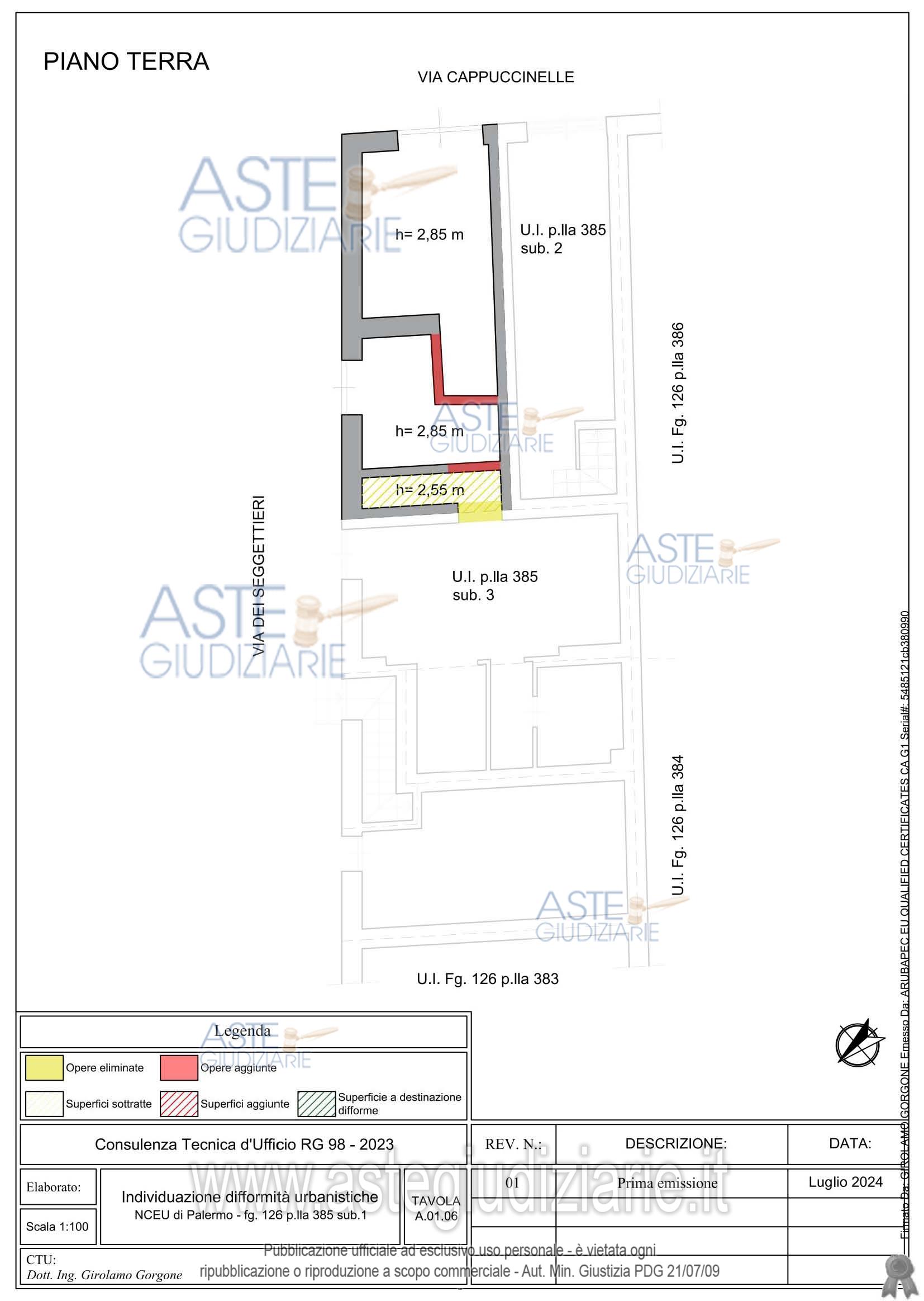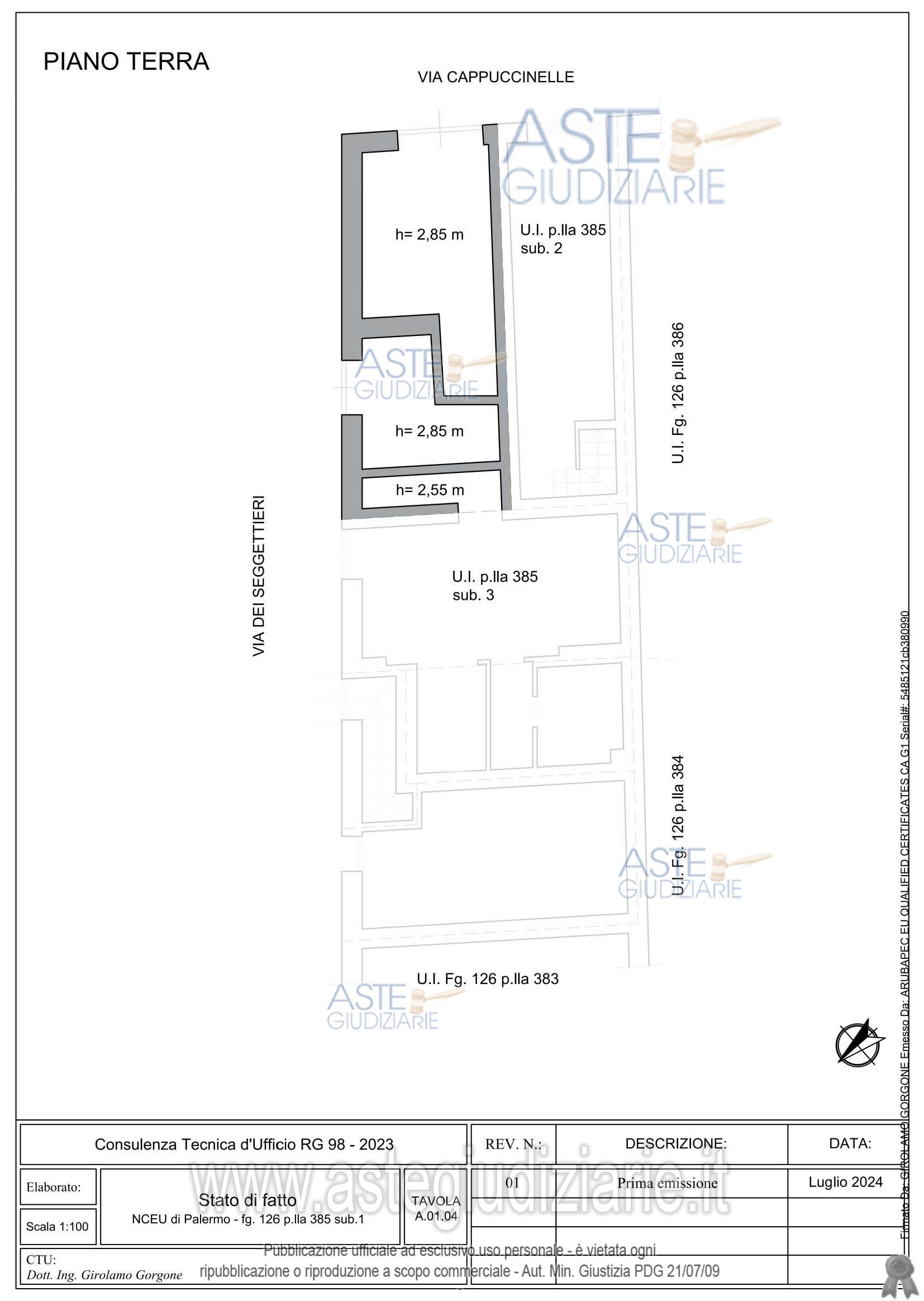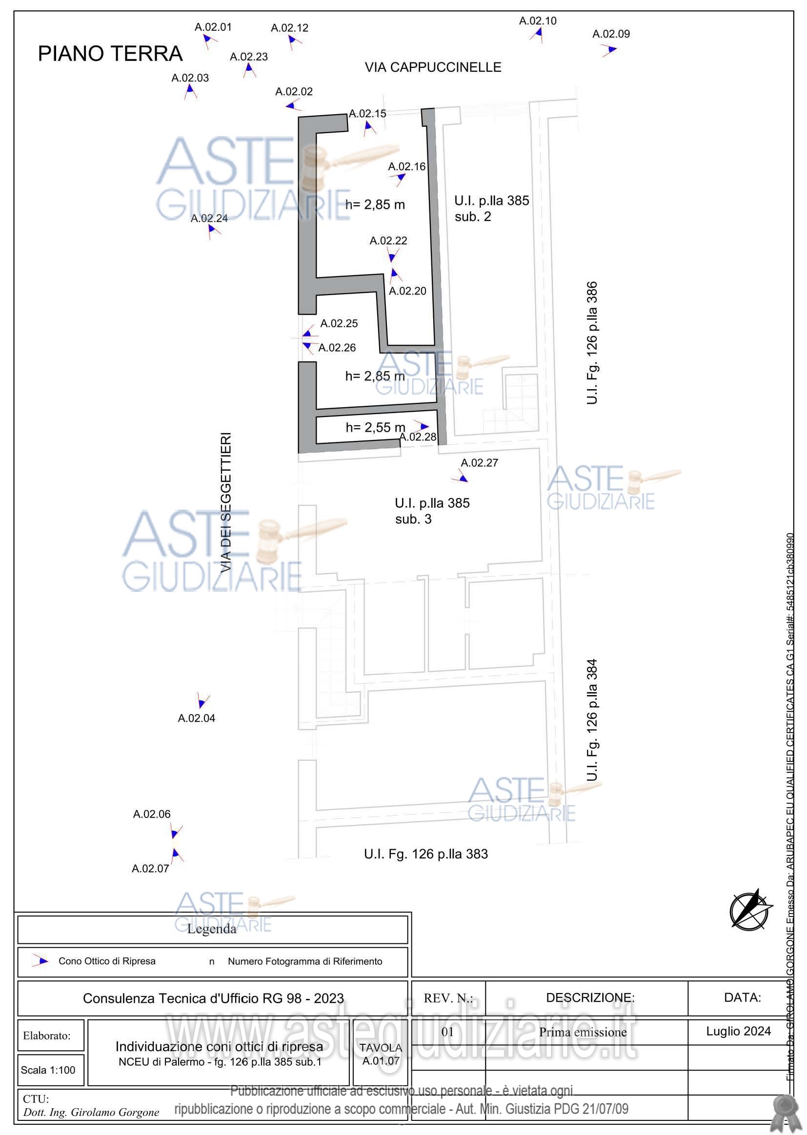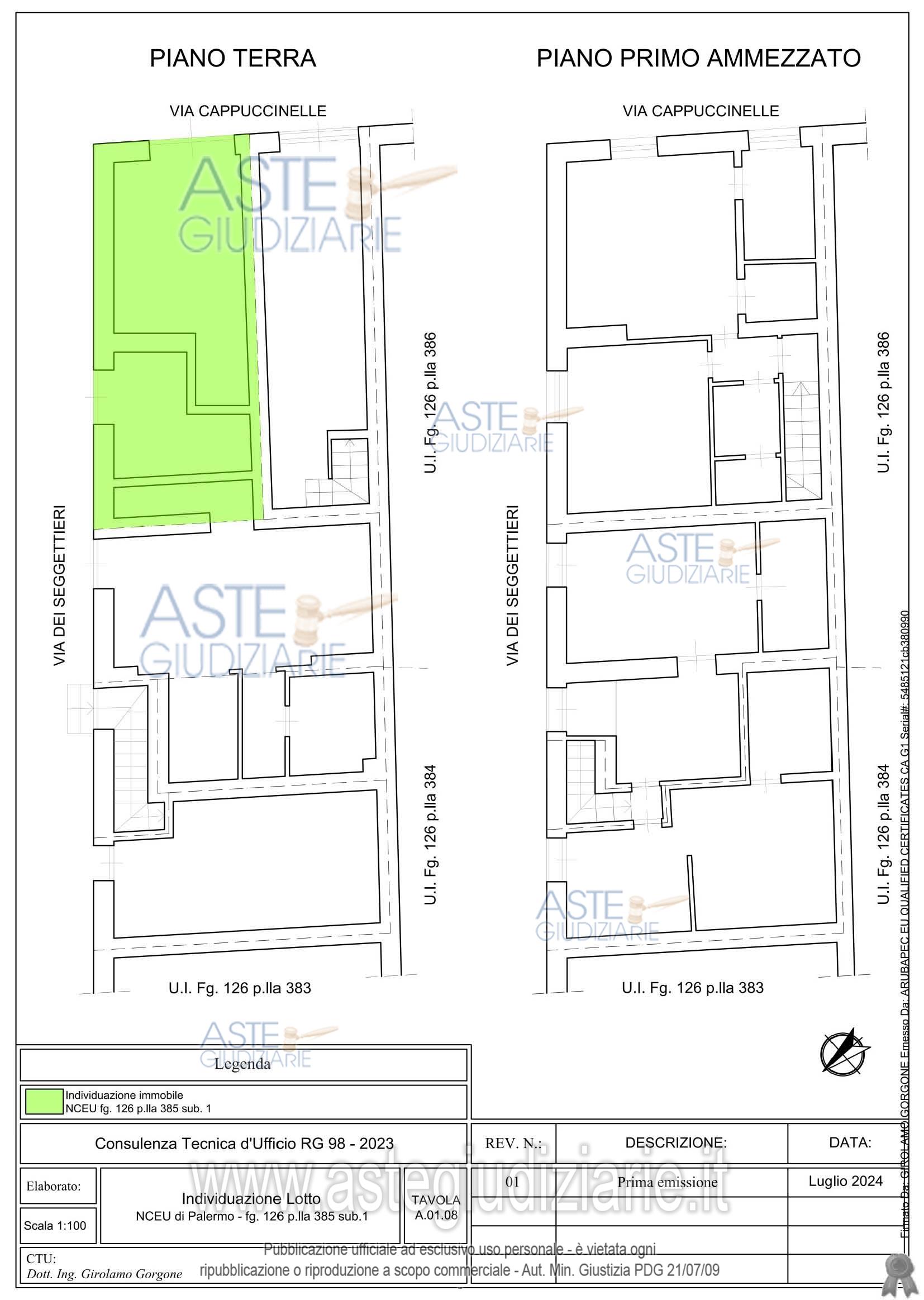 Vendita all'asta Senza incanto, con gara telematica sincrona mista - LOTTO 1: Piena ed intera proprietà di negozio con accesso da via Cappuccinelle n.9, sito al piano terra, identificato al N.C.E.U. del Comune di Palermo al foglio 126, particella 385, sub. 1, categoria C/1, Classe 6, Consistenza 11 mq, Superficie catastale 15 mq. Prezzo base € 13.077,87 (offerta minima € 9.808,40). Data vendita 13/11/2025 ore 09:00. Professionista delegato alla vendita Avv. Daniele Fresta - Email "videcadeleghe@gmail.com"; Cell. 3517658698; Tel. 0917285446. Custode Giudiziario Avv. Daniele Fresta - Email "videcadeleghe@gmail.com"; Cell. 3517658698; Tel. 0917285446. Rif. Tribunale di Palermo - Esecuzione immobiliare post legge 80 n. 98/2023