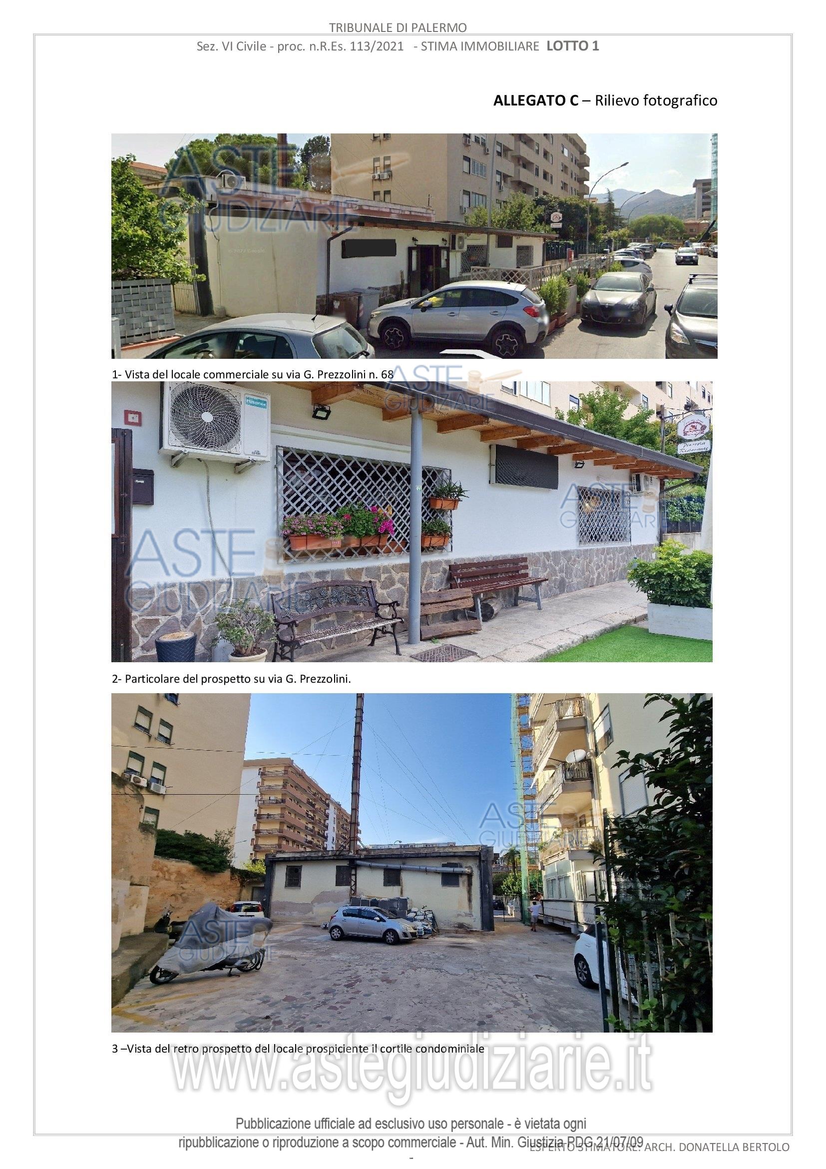 Vendita all'asta Senza incanto, con gara telematica sincrona mista - LOTTO 1: Locale commerciale (negozio) sito in Palermo, Via Giuseppe Prezzolini n. 68, piano terra, costituito da un unico fabbricato isolato ad un piano fuori terra, facente parte di un complesso edilizio destinato prevalentemente ad abitazioni. Prezzo base € 303.000,00 (offerta minima € 227.250,00). Data vendita 20/05/2026 ore 15:00. Professionista delegato alla vendita Avv. Fausta Firrarello - Email "esecuzionipalermo@gmail.com"; Tel. 0917303140. Custode Giudiziario Avv. Fausta Firrarello - Email "esecuzionipalermo@gmail.com"; Tel. 0917303140. Rif. Tribunale di Palermo - Esecuzione immobiliare post legge 80 n. 113/2021