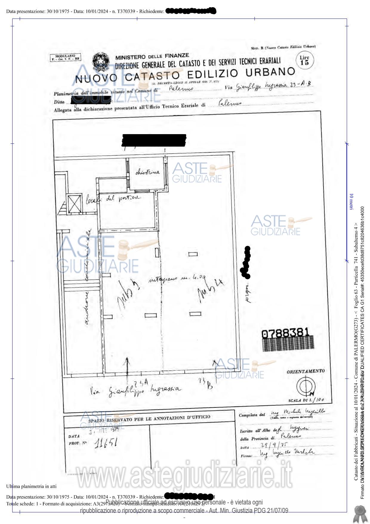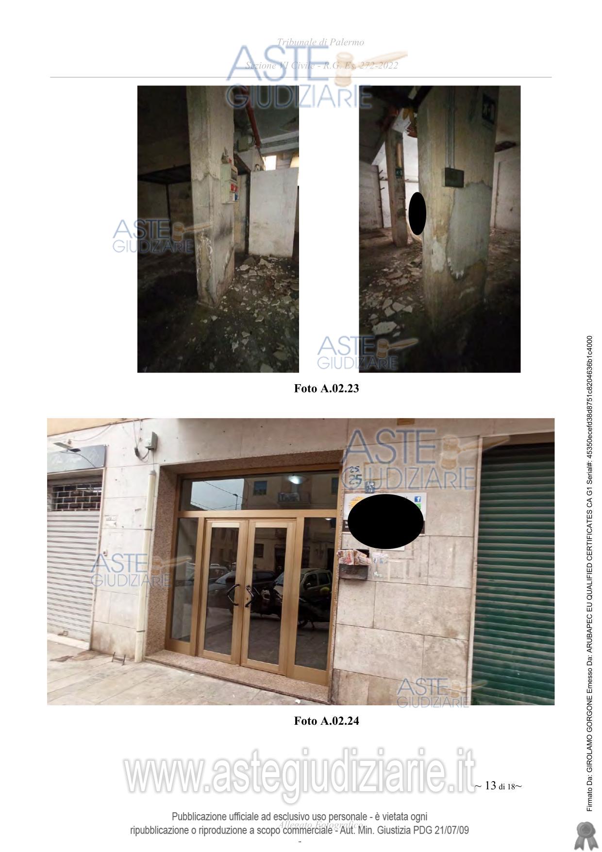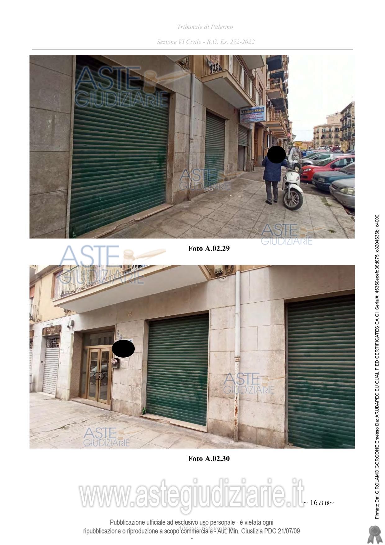 Vendita all'asta Senza incanto, con gara telematica sincrona mista - LOTTO 1: piena proprietà del negozio sito in Palermo, via Gian Filippo Ingrassia n. 23/A, piano terra, di superficie commerciale complessiva pari a mq 61,00; identificato al Catasto dei Fabbricati del Comune di Palermo al foglio 63, particella 741, sub. 3, zona censuaria 2, categoria C/1, classe 10, consistenza 54 mq, rendita € 1.826,71. Prezzo base € 41.000,00 (offerta minima € 30.750,00). Data vendita 10/06/2026 ore 09:00. Professionista delegato alla vendita Avv. Marco Morici - Email "assoveda@gmail.com". Custode Giudiziario Avv. Marco Morici - Email "assoveda@gmail.com". Rif. Tribunale di Palermo - Esecuzione immobiliare post legge 80 n. 272/2022