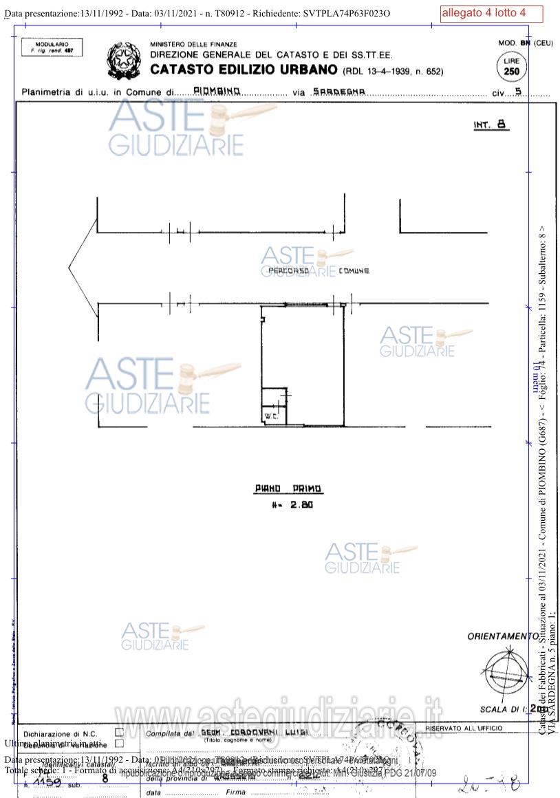 Vendita all'asta Senza incanto, con gara telematica asincrona - LOTTO 4: Proprietà superficiaria di fondo commerciale posto nel Comune di Piombino via Sardegna 5 piano primo. Prezzo base € 24.750,00 (offerta minima € 18.562,50). Data inizio operazioni di vendita: 25/05/2026 ore 10:00. Curatore Dott. Alessandro Turini - Email "turini@auditstudio.it"; Tel. 056549376. Rif. Tribunale di Livorno - Fallimentare (nuovo rito) n. 43/2021