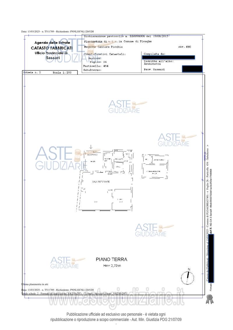 Vendita all'asta Senza incanto, con gara telematica asincrona - LOTTO UNICO: Ristorante ubicato a Ploaghe (SS) - LOCALITA "CANTARU PICCHIA". L’immobile oggetto di pignoramento è una struttura destinata ad Agriristoro e annesso terreno o cortile pertinenziale. E' presente un'area parcheggio collocata lungo una strada di distribuzione interna. Identificato al N.C.E.U. Fg. 26 Part. 454 Cat. C1.Il tutto come meglio descritto nell’elaborato peritale depositato in atti, visionabile sui siti indicati e che si dà per conosciuto agli offerenti. Prezzo base € 97.524,00 (offerta minima € 73.143,00). Data inizio operazioni di vendita: 04/06/2026 ore 17:00. Giudice Elisa Remonti. Professionista delegato alla vendita Avv. Giovanna Maria Dessì - Email "giovannadessi29@gmail.com"; Tel. 0794138827. Custode Giudiziario Istituto Vendite Giudiziarie Sassari - Email "visitaivgsassari@gmail.com"; Tel. 079260228. Rif. Tribunale di Sassari - Espropriazione immobiliare (cartabia) n. 130/2024