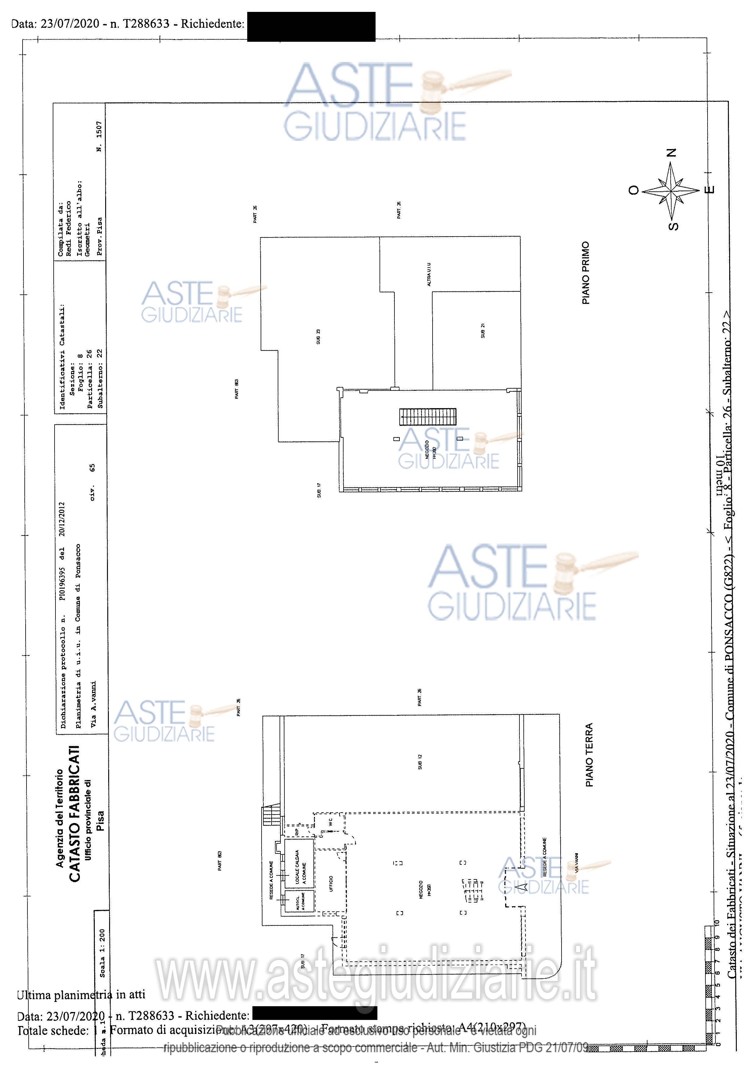 Vendita all'asta Senza incanto, con gara telematica sincrona mista - LOTTO UNICO: NEGOZIO MQ.57 - MAGAZZINO MQ.121 - MAGAZZINO MQ.140. Prezzo base € 104.125,00 (offerta minima € 78.093,75). Data vendita 21/05/2026 ore 14:30. Professionista delegato alla vendita Avv. Federica Geri - Email "federica@barsottieustachi.it"; Tel. 050540234. Custode Giudiziario Dott. Cosimo Erriquez - Email "prenotazionipisa@astagiudiziaria.com"; Cell. 3461335978; Tel. 050554790. Rif. Tribunale di Pisa - Esecuzione immobiliare post legge 80 n. 42/2020