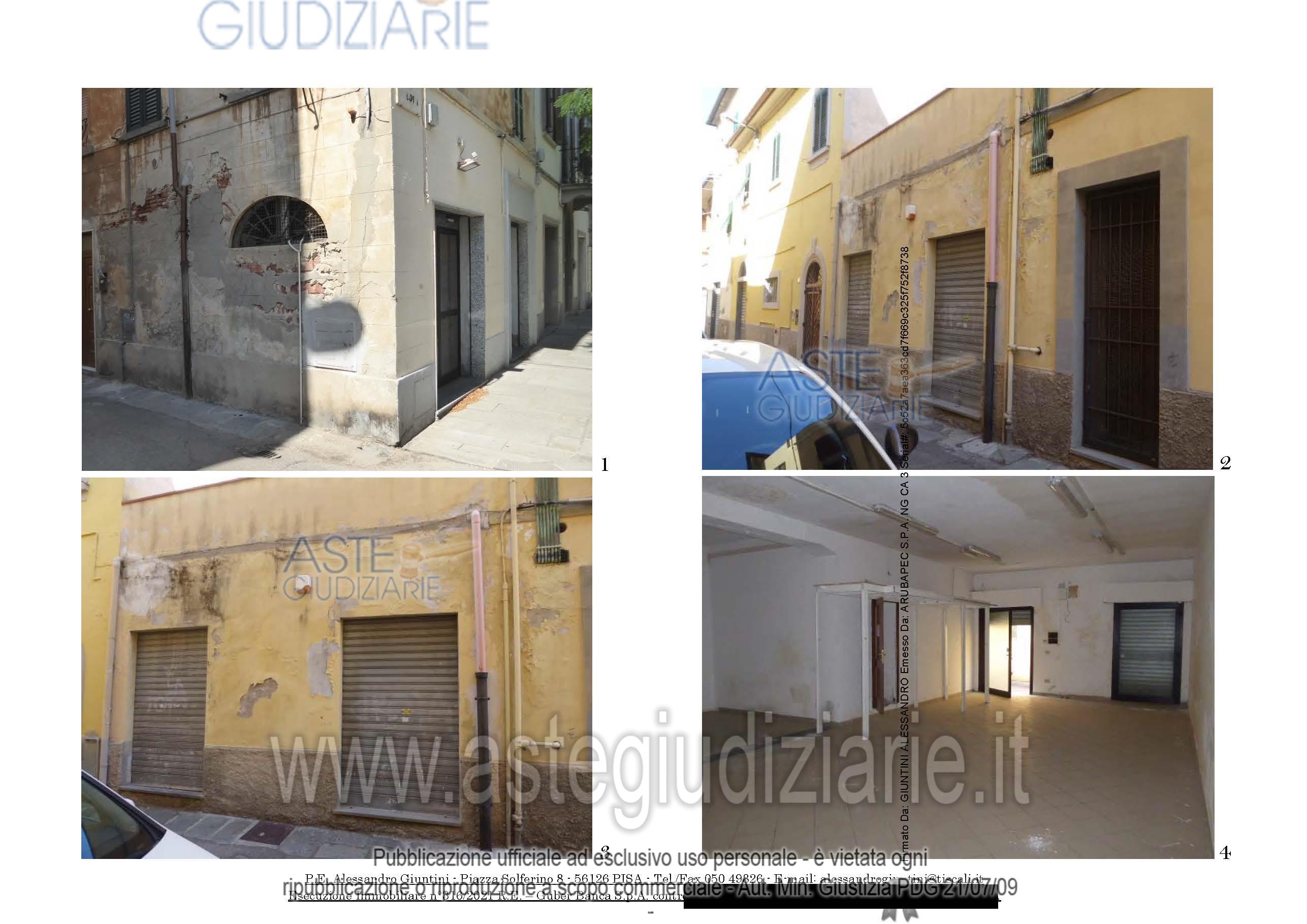 Vendita in attesa dell'emissione del nuovo bando d'asta. LOTTO UNICO: Unità immobiliare ad uso commerciale . Ultimo prezzo base € 32.000,00 (offerta minima € 24.000,00). Giudice Dott. Laura Pastacaldi. Professionista delegato alla vendita Avv. Alisia Cecconi - Email "avvocatocecconi@hotmail.it"; Tel. 050540613. Custode Giudiziario Dott. Cosimo Erriquez - Email "prenotazionipisa@astagiudiziaria.com"; Cell. 3468748140; Tel. 050554790. Rif. Tribunale di Pisa - Esecuzione immobiliare post legge 80 n. 316/2021