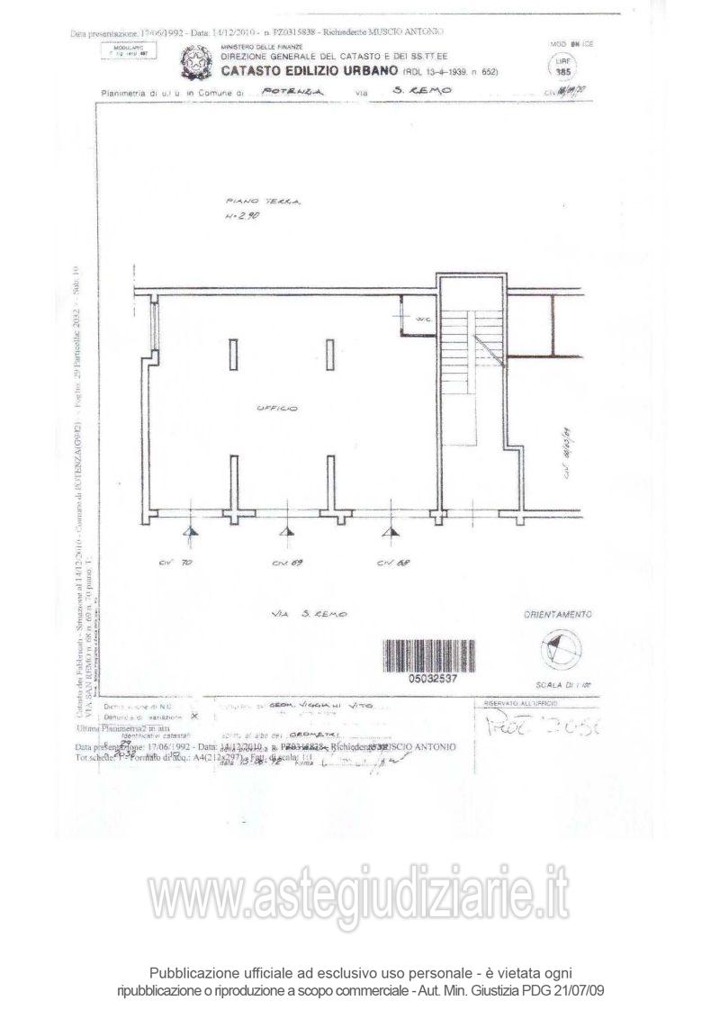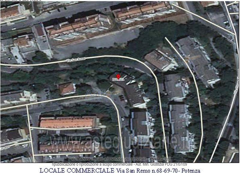 Vendita all'asta Senza incanto - LOTTO 2: Locale commerciale sito alla via Sanremo nn. 68,69,70 piano T-1 nel comune di Potenza, di mq. 98,00 composto da tre ambienti comunicanti tra loro, un bagno ed un piccolo deposito Il locale commerciale fa parte di un fabbricato ubicato in un complesso edilizio condominiale denominato “Parco Aurora” di Potenza. Prezzo base € 43.605,00 (offerta minima € 32.703,75). Data vendita 23/10/2025 ore 11:00. Professionista delegato alla vendita Avv. Annamaria Crescenzi - Email "annamariacrescenzi3@gmail.com"; Cell. 3315815990; Tel. 089234675. Custode Giudiziario Avv. Annamaria Crescenzi - Email "annamariacrescenzi3@gmail.com"; Cell. 3315815990; Tel. 089234675. Rif. Tribunale di Potenza - Esecuzione immobiliare n. 132/2008