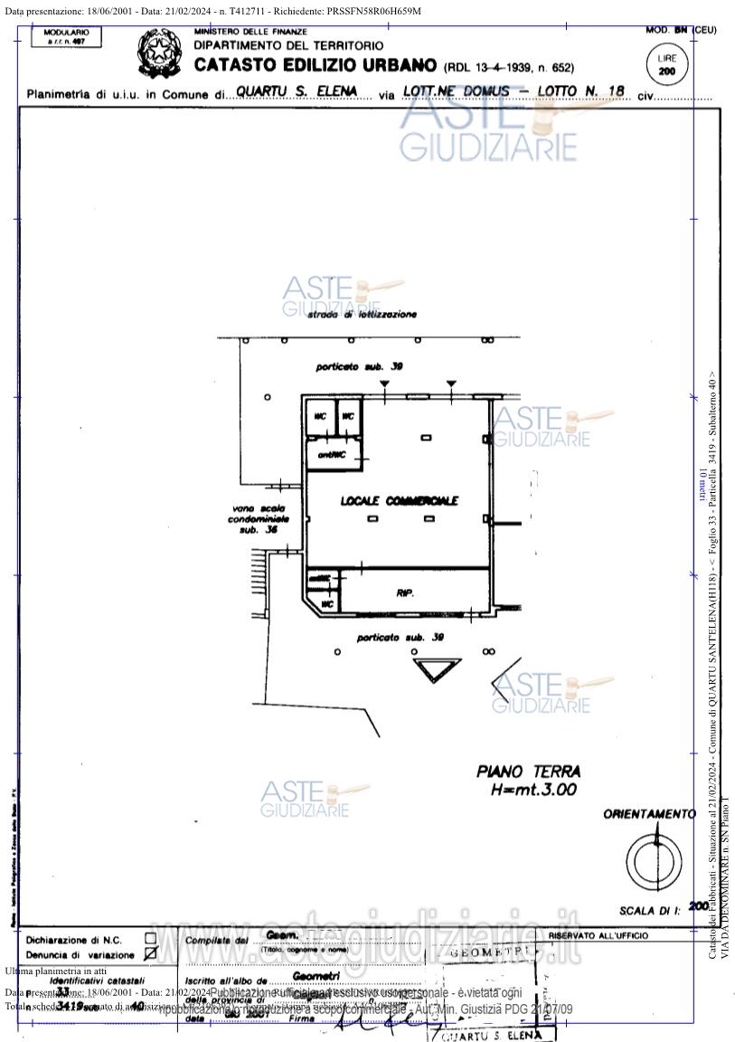 Vendita all'asta Senza incanto, con gara telematica asincrona - LOTTO 5: LOTTO 5 – diritto di proprietà su Locale commerciale sito in Comune di QUARTUSANT’ELENA, via Monaco s.n., LOTTIZZAZIONE DOMUS, distinto al NCEU F. 33 part. 3419 sub. 40cat. C/1 cl. 7 piano T, consistenza mq. 116 sup. catastale mq. 113, R.C. 3.187,16 , composto da ampio vano vendita (attualmente adibito a BAR), disimpegno due servizi igienici per il pubblico, due locali magazzino, disimpegno e servizio igienico, Occupato fino all’aggiudicazione del bene, presenti difformità sanabili. Prezzo base € 193.800,00 (offerta minima € 145.350,00). Data inizio operazioni di vendita: 24/06/2026 ore 16:00. Professionista delegato alla vendita Dott. Elena Loddo - Email "studioelenaloddo@gmail.com"; Tel. 0707967825. Custode Giudiziario Ivg Sardegna Srl - Email "ivg.visiteimmobili@tiscali.it"; Tel. 0702299036. Rif. Tribunale di Cagliari - Esecuzione immobiliare post legge 80 n. 15/2018