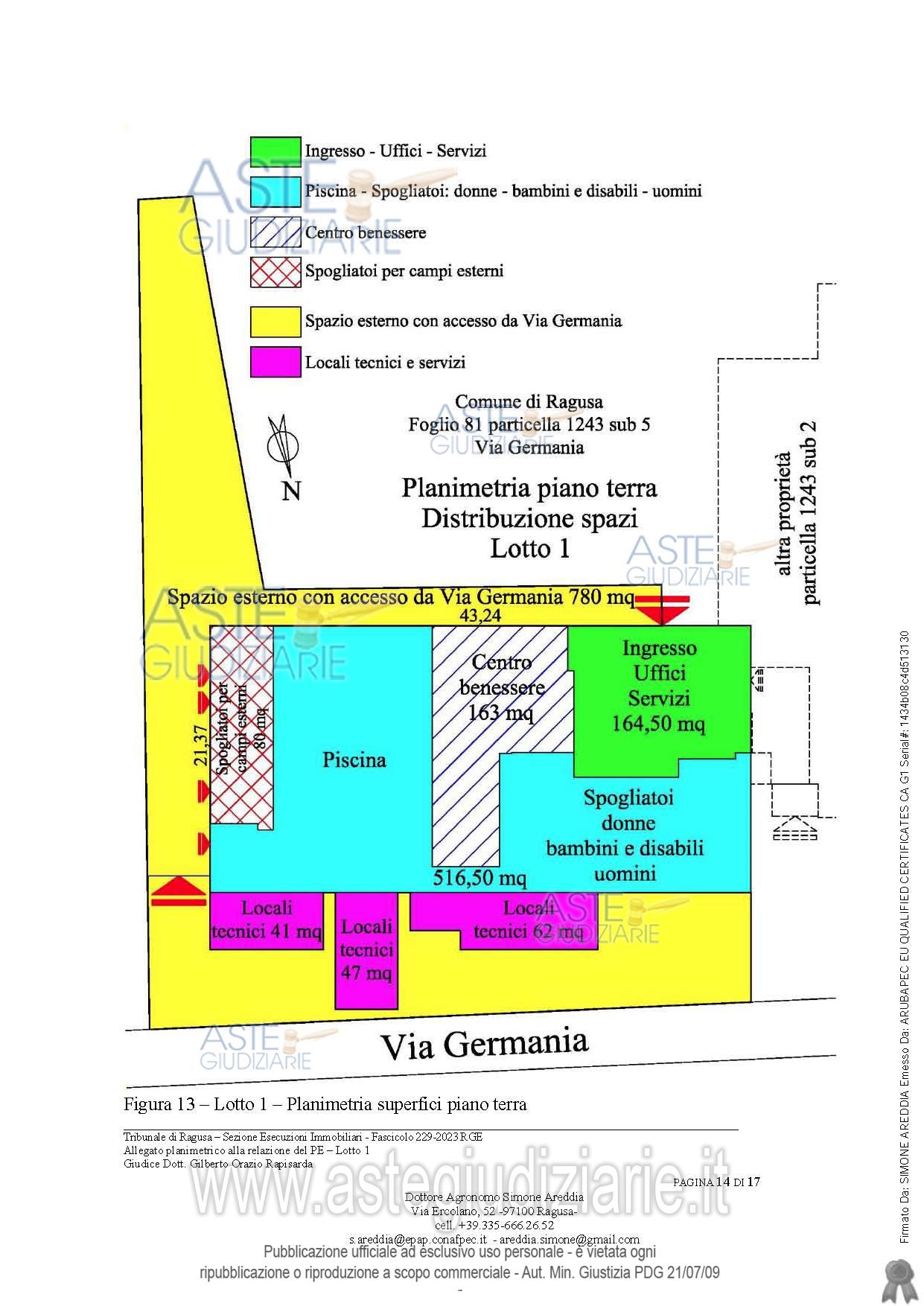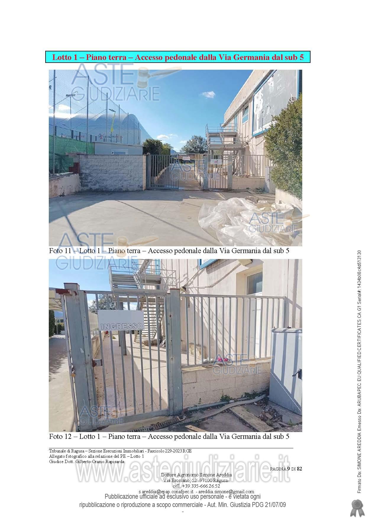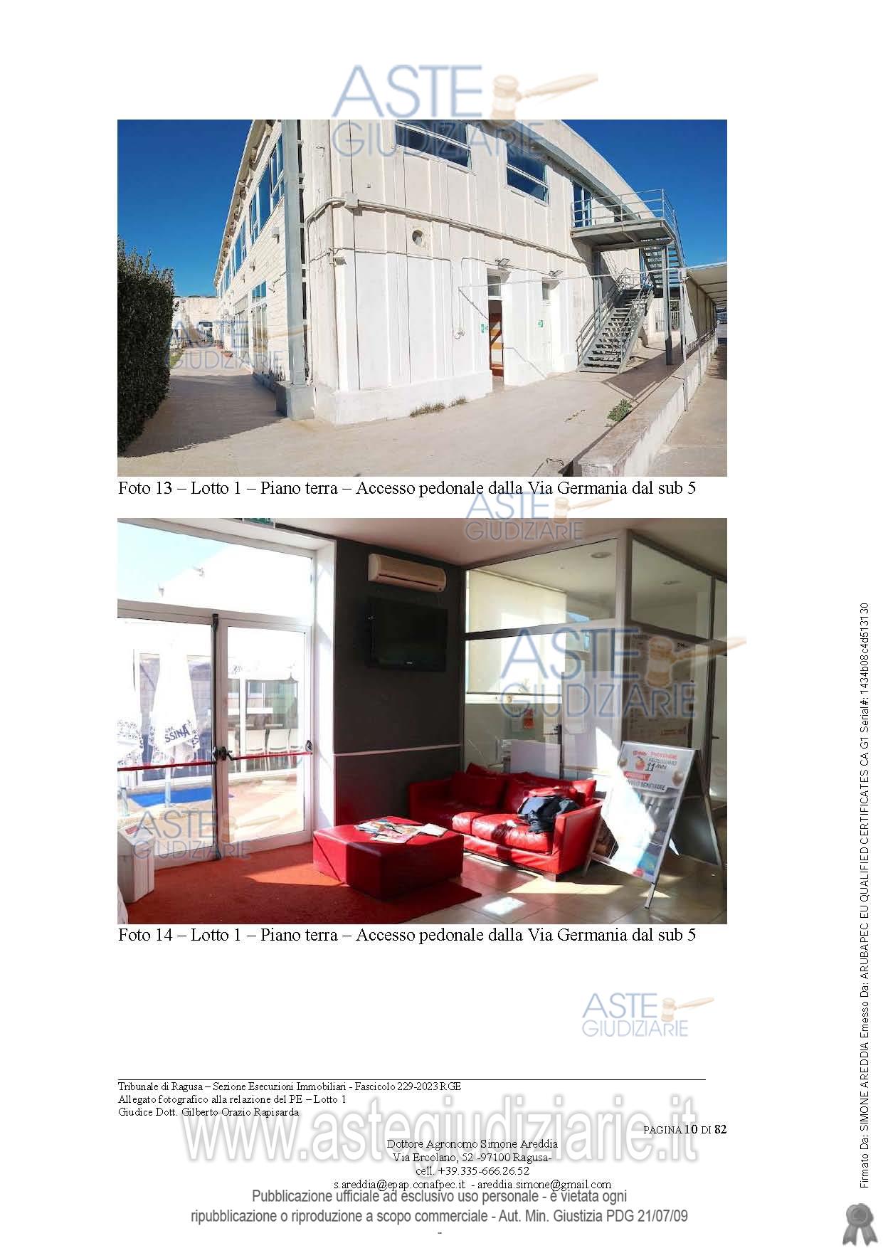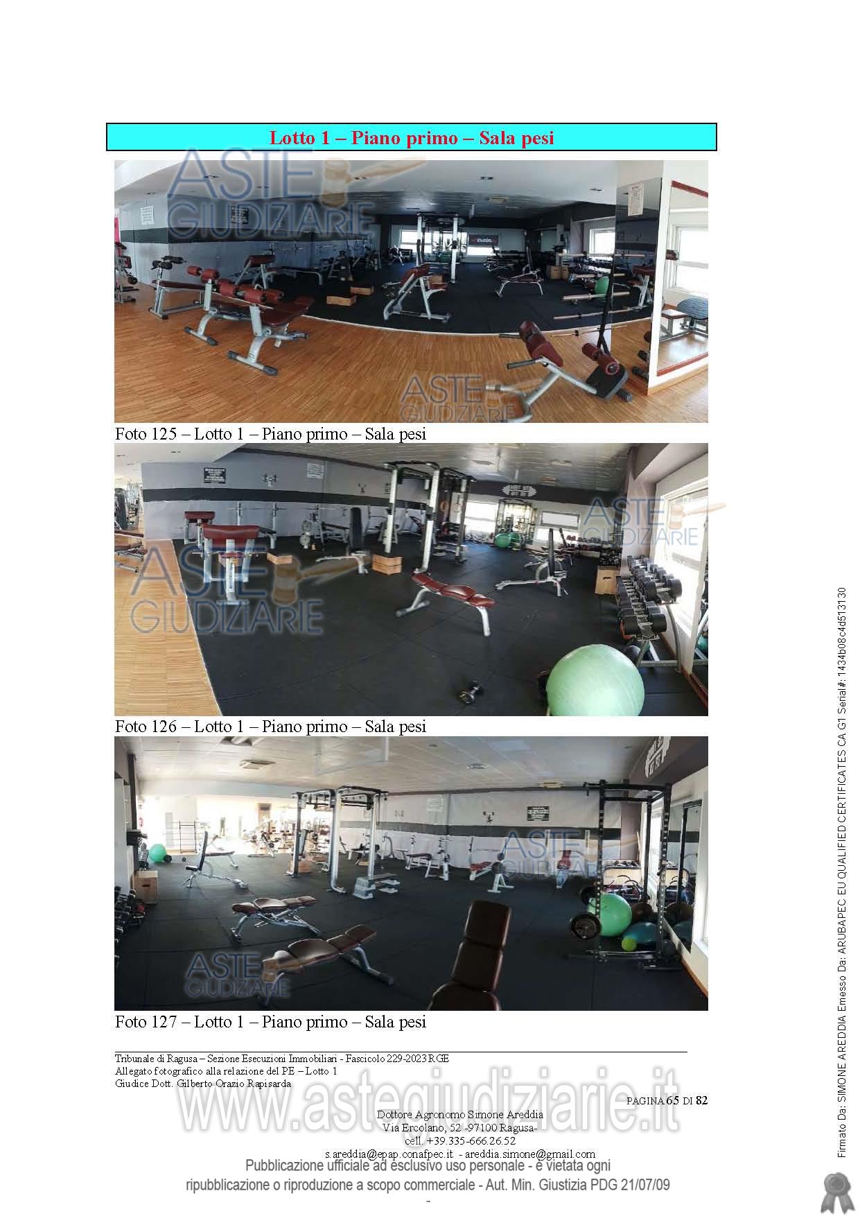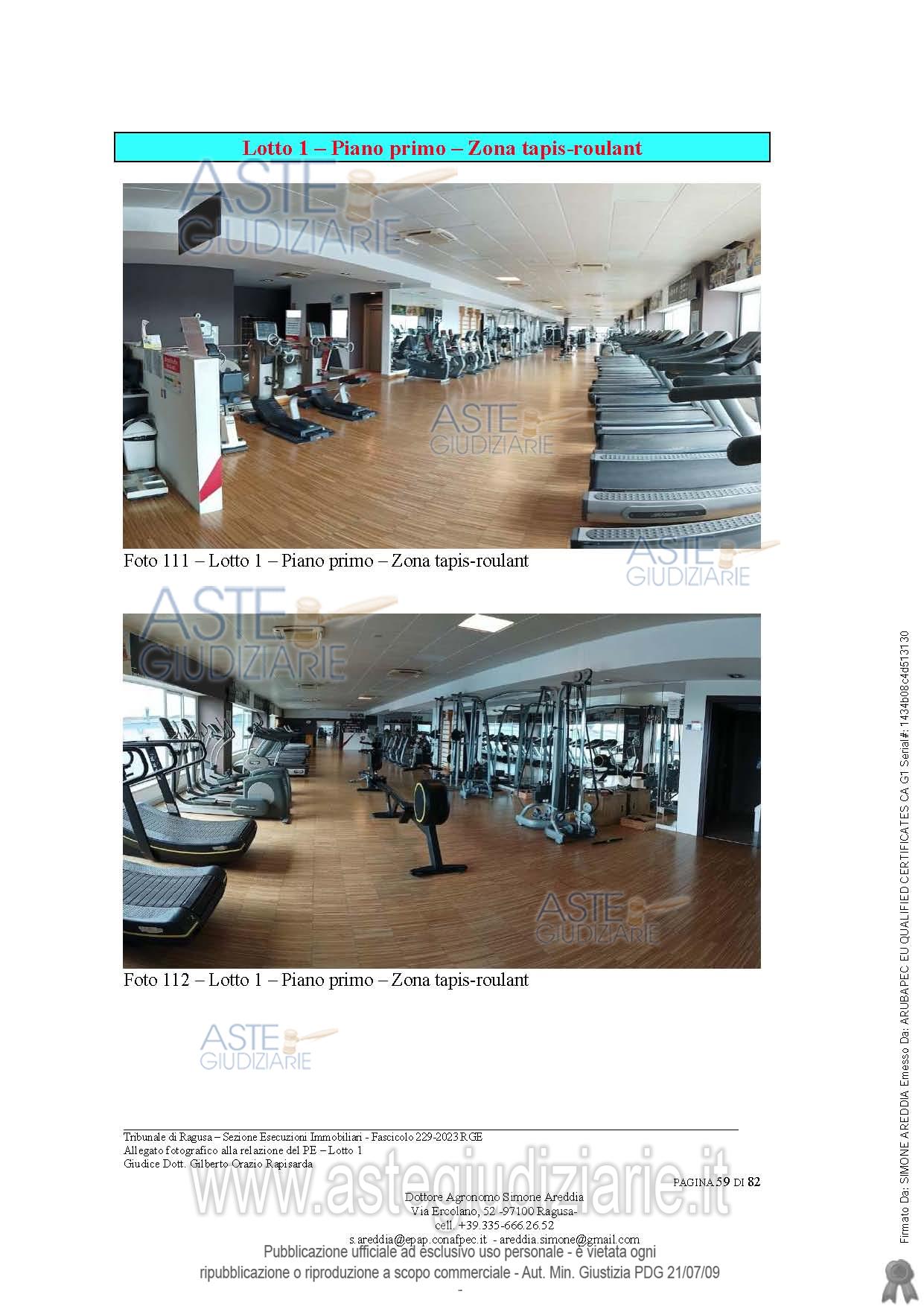 Vendita all'asta Senza incanto, con gara telematica sincrona mista - LOTTO 1: Diritti di piena proprietà di un fabbricato per esercizio sportivo, su due livelli, adibito aCentro fitness, con pertinenziale corte di accesso, sito in Ragusa Via Germania N.12, meglioidentificato al N.C.E.U del predetto Comune alla Sez. A, Foglio 81, particella 1243, sub. 5Cat. D6. Prezzo base € 622.312,00 (offerta minima € 466.734,00). Data vendita 13/02/2026 ore 16:00. Giudice Antonio Pianoforte. Professionista delegato alla vendita Dott. Giovanna Scifo - Email "g.scifo@gmail.com". Custode Giudiziario Dott. Giovanna Scifo - Email "g.scifo@gmail.com"; Tel. 3392519150. Rif. Tribunale di Ragusa - Espropriazione immobiliare (cartabia) n. 229/2023