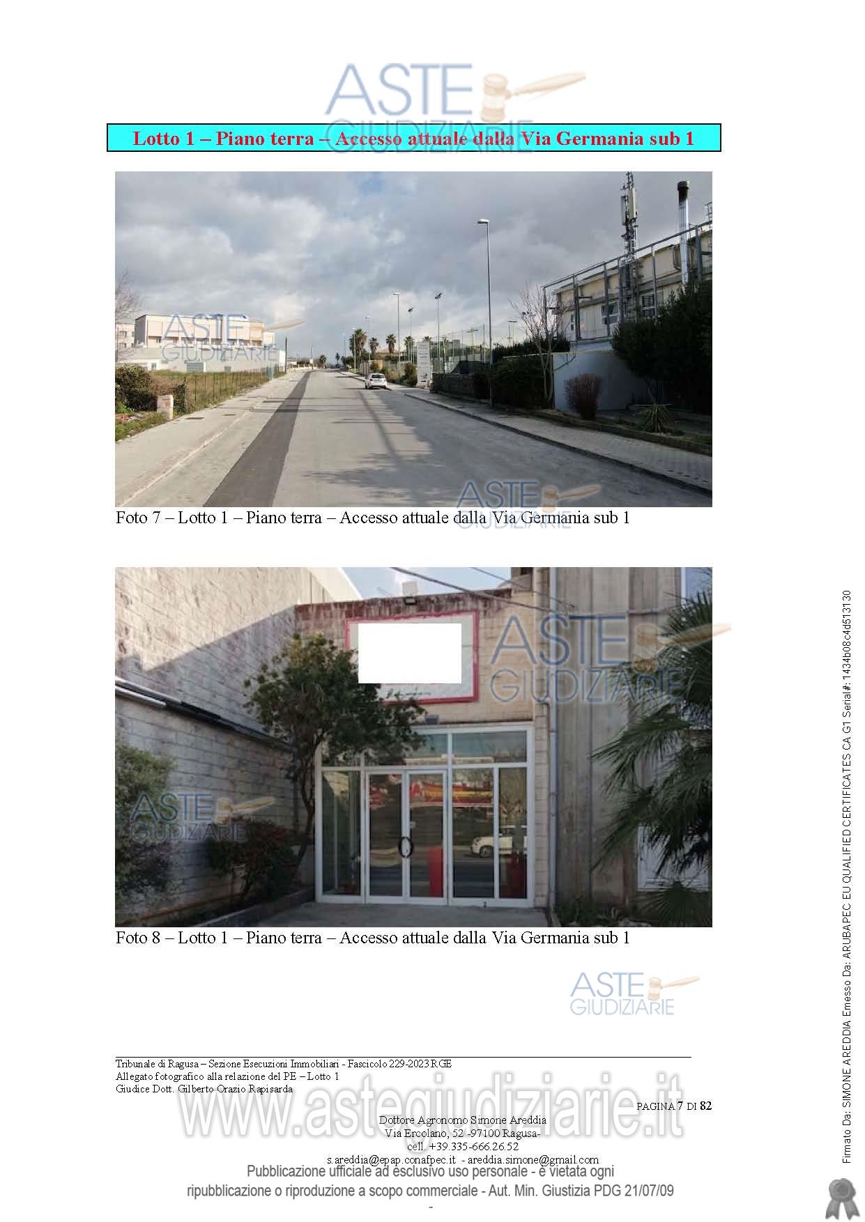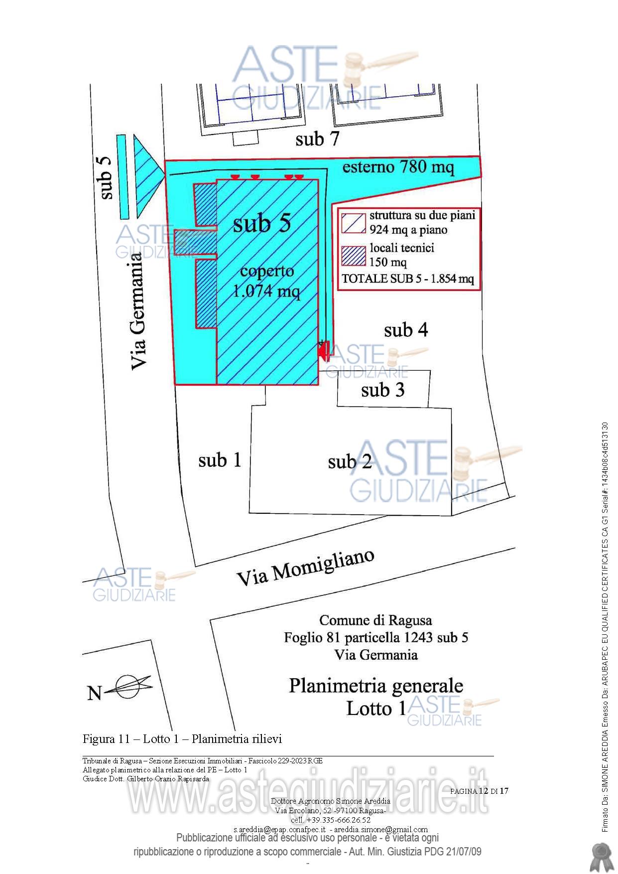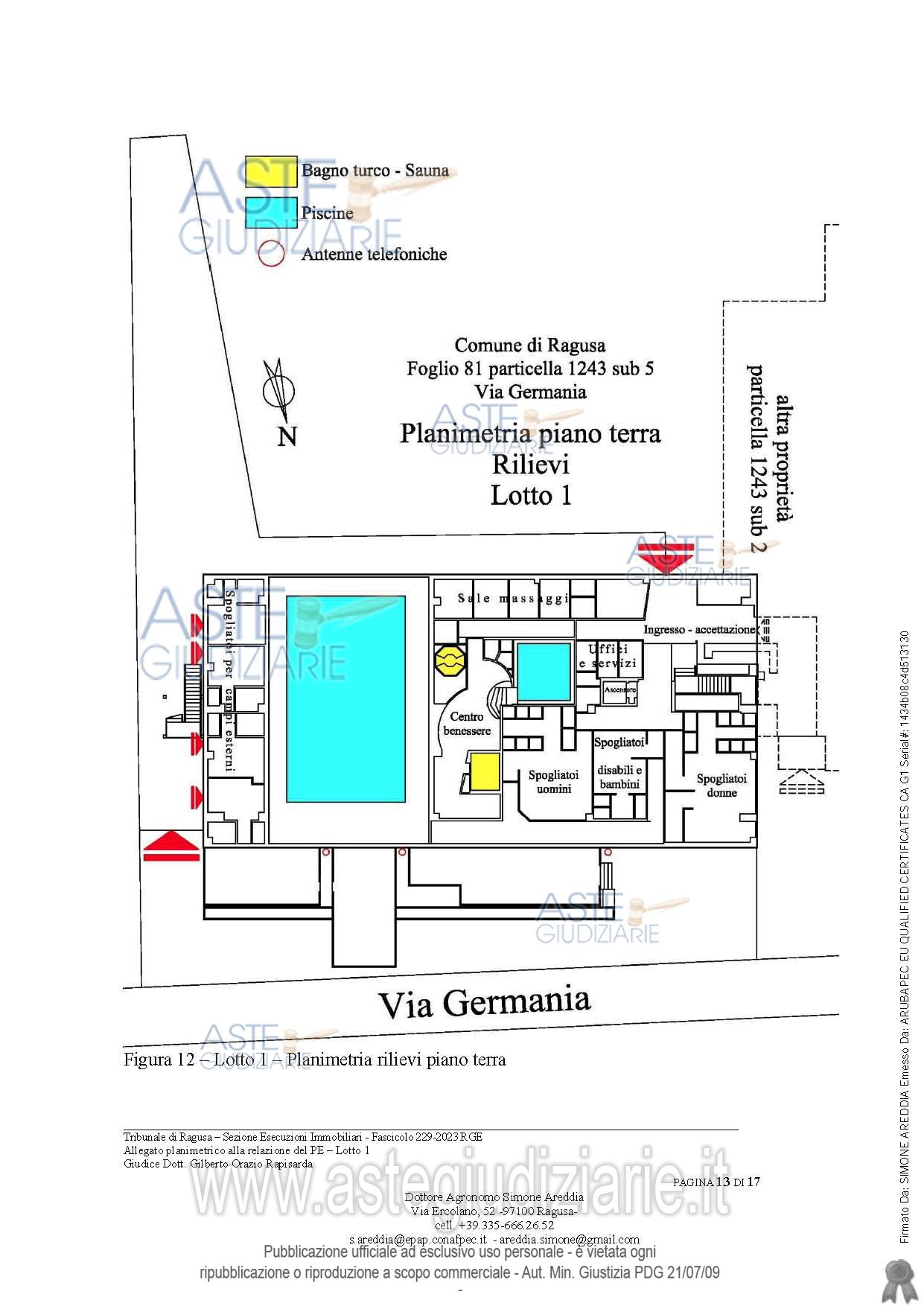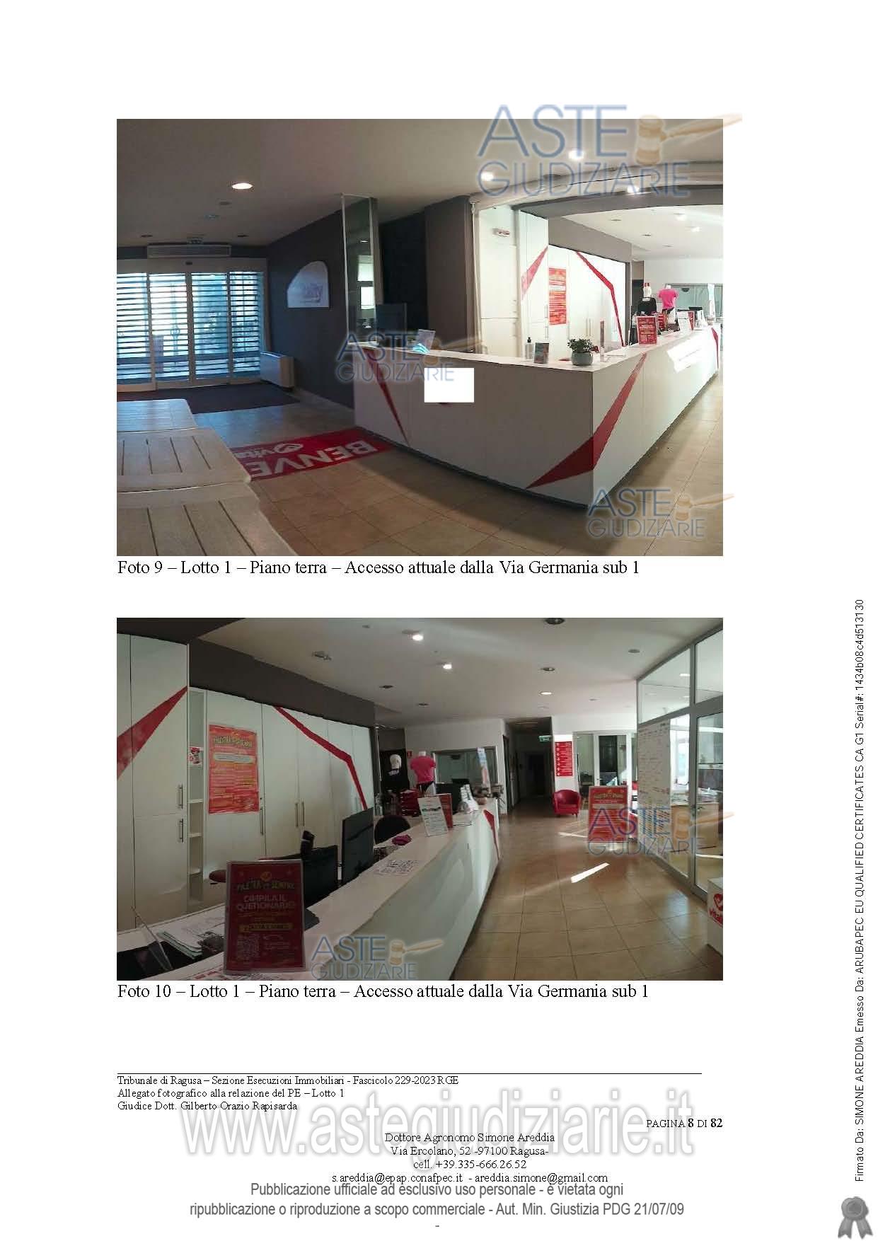 Vendita all'asta Senza incanto, con gara telematica sincrona mista - LOTTO 1: Diritti di piena proprietà di un fabbricato per esercizio sportivo, su due livelli, adibito aCentro fitness, con pertinenziale corte di accesso, sito in Ragusa Via Germania N.12, meglioidentificato al N.C.E.U del predetto Comune alla Sez. A, Foglio 81, particella 1243, sub. 5Cat. D6. Prezzo base € 622.312,00 (offerta minima € 466.734,00). Data vendita 13/02/2026 ore 16:00. Giudice Antonio Pianoforte. Professionista delegato alla vendita Dott. Giovanna Scifo - Email "g.scifo@gmail.com". Custode Giudiziario Dott. Giovanna Scifo - Email "g.scifo@gmail.com"; Tel. 3392519150. Rif. Tribunale di Ragusa - Espropriazione immobiliare (cartabia) n. 229/2023