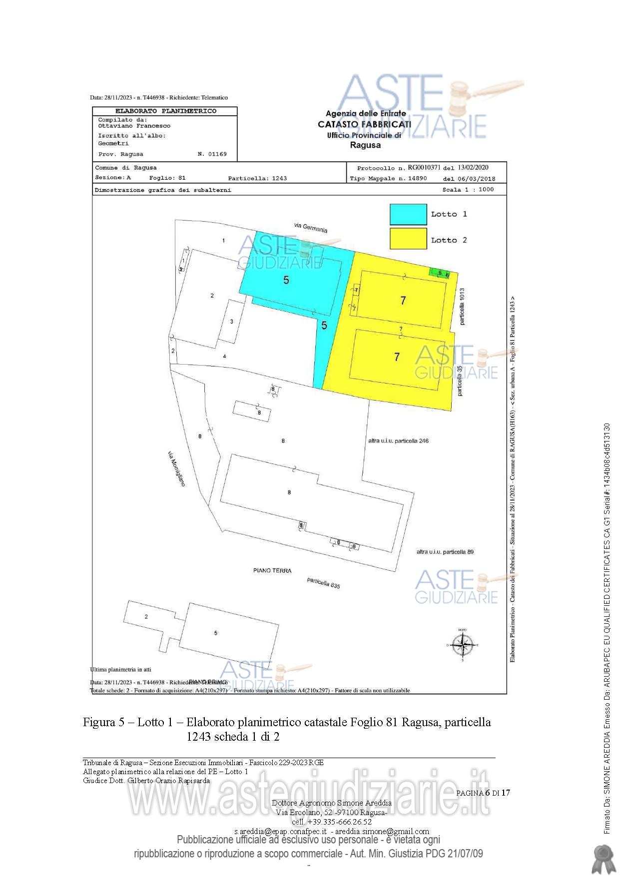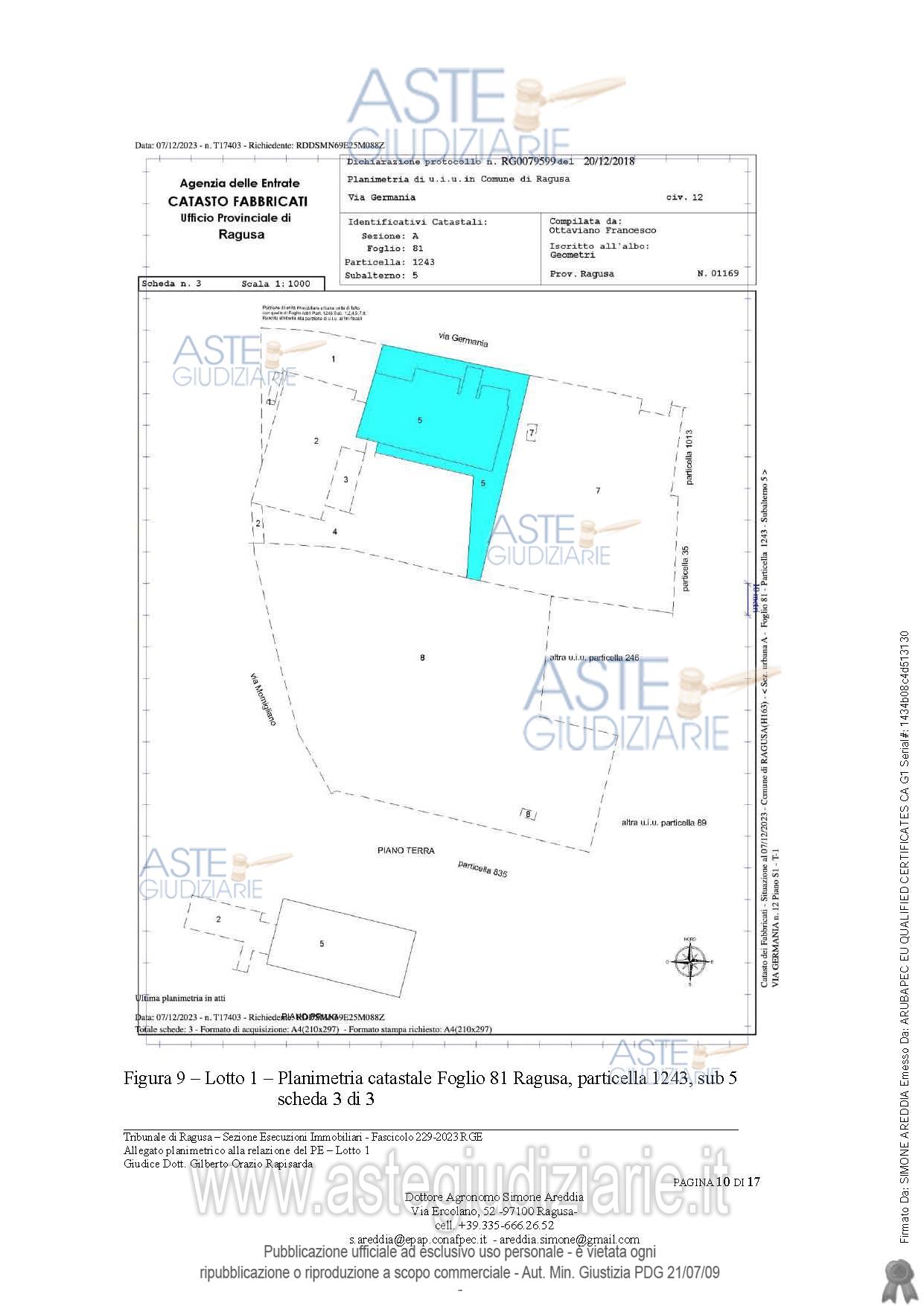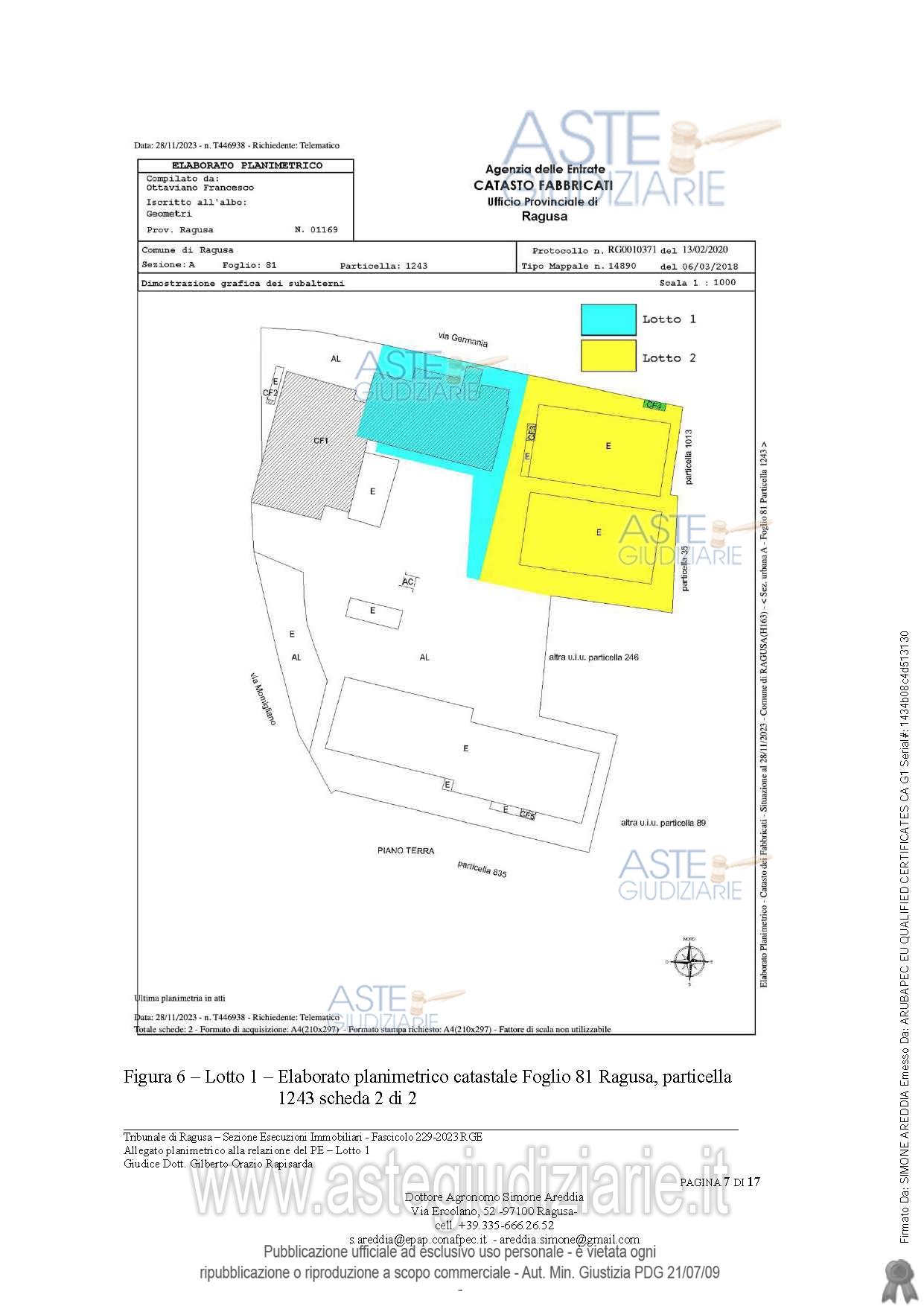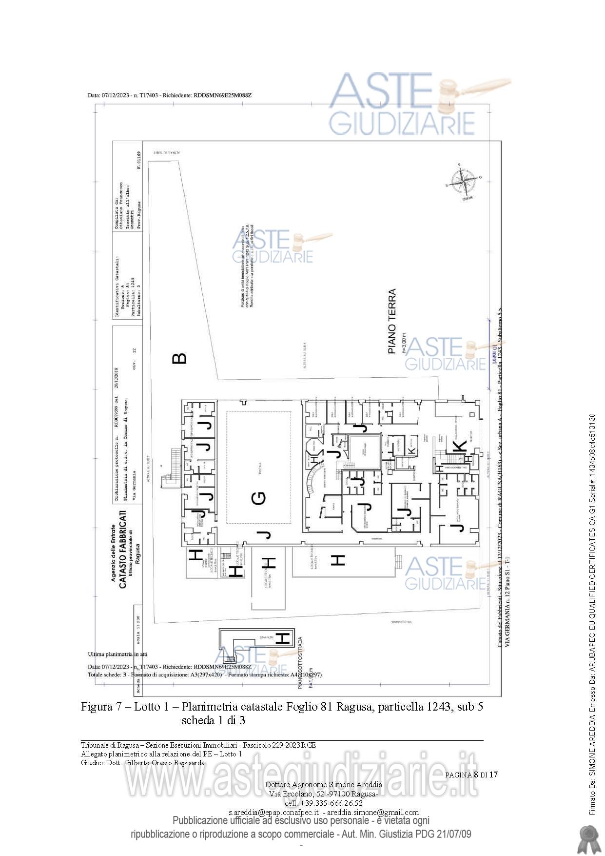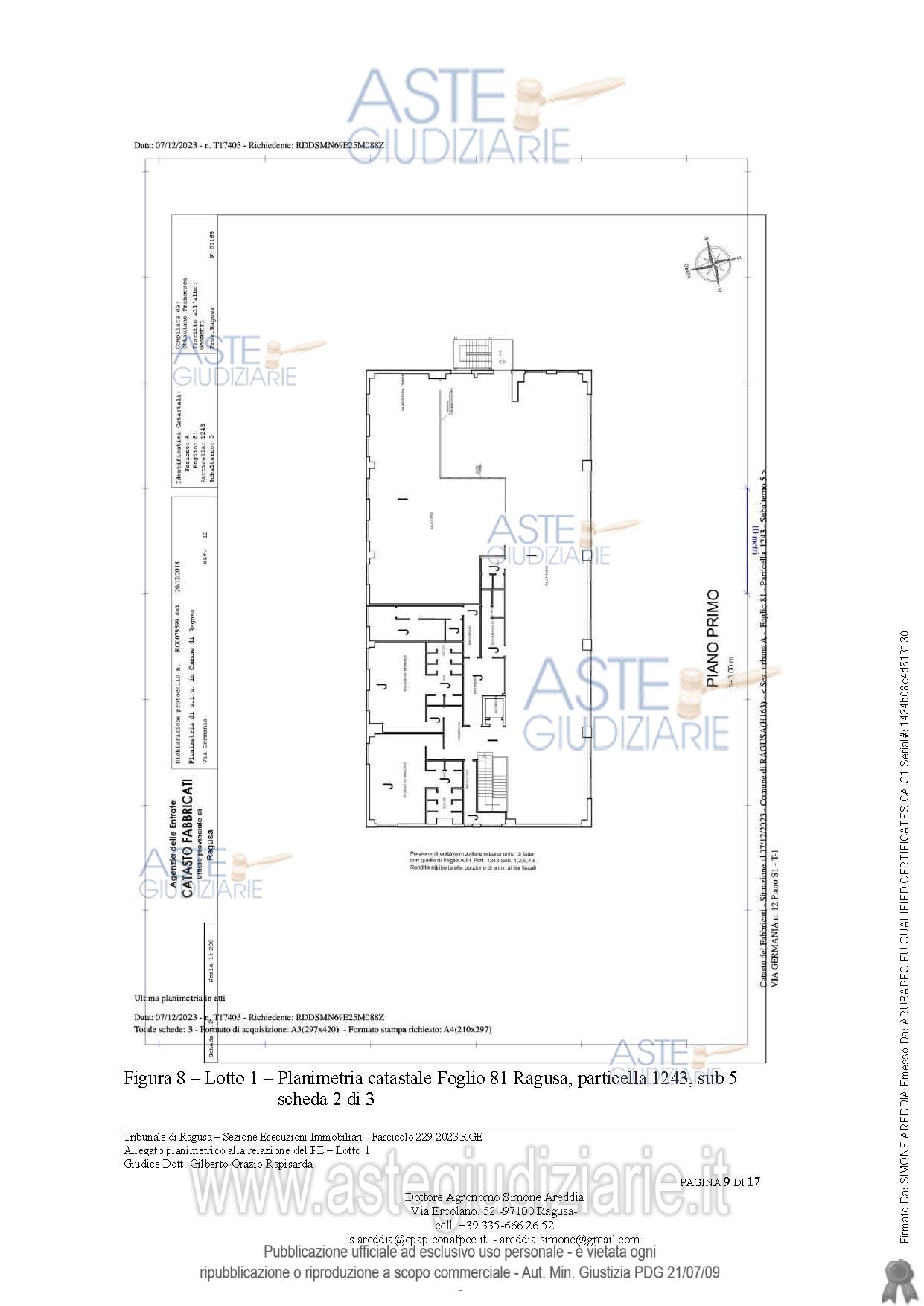 Vendita all'asta Senza incanto, con gara telematica sincrona mista - LOTTO 1: Diritti di piena proprietà di un fabbricato per esercizio sportivo, su due livelli, adibito aCentro fitness, con pertinenziale corte di accesso, sito in Ragusa Via Germania N.12, meglioidentificato al N.C.E.U del predetto Comune alla Sez. A, Foglio 81, particella 1243, sub. 5Cat. D6. Prezzo base € 622.312,00 (offerta minima € 466.734,00). Data vendita 13/02/2026 ore 16:00. Giudice Antonio Pianoforte. Professionista delegato alla vendita Dott. Giovanna Scifo - Email "g.scifo@gmail.com". Custode Giudiziario Dott. Giovanna Scifo - Email "g.scifo@gmail.com"; Tel. 3392519150. Rif. Tribunale di Ragusa - Espropriazione immobiliare (cartabia) n. 229/2023