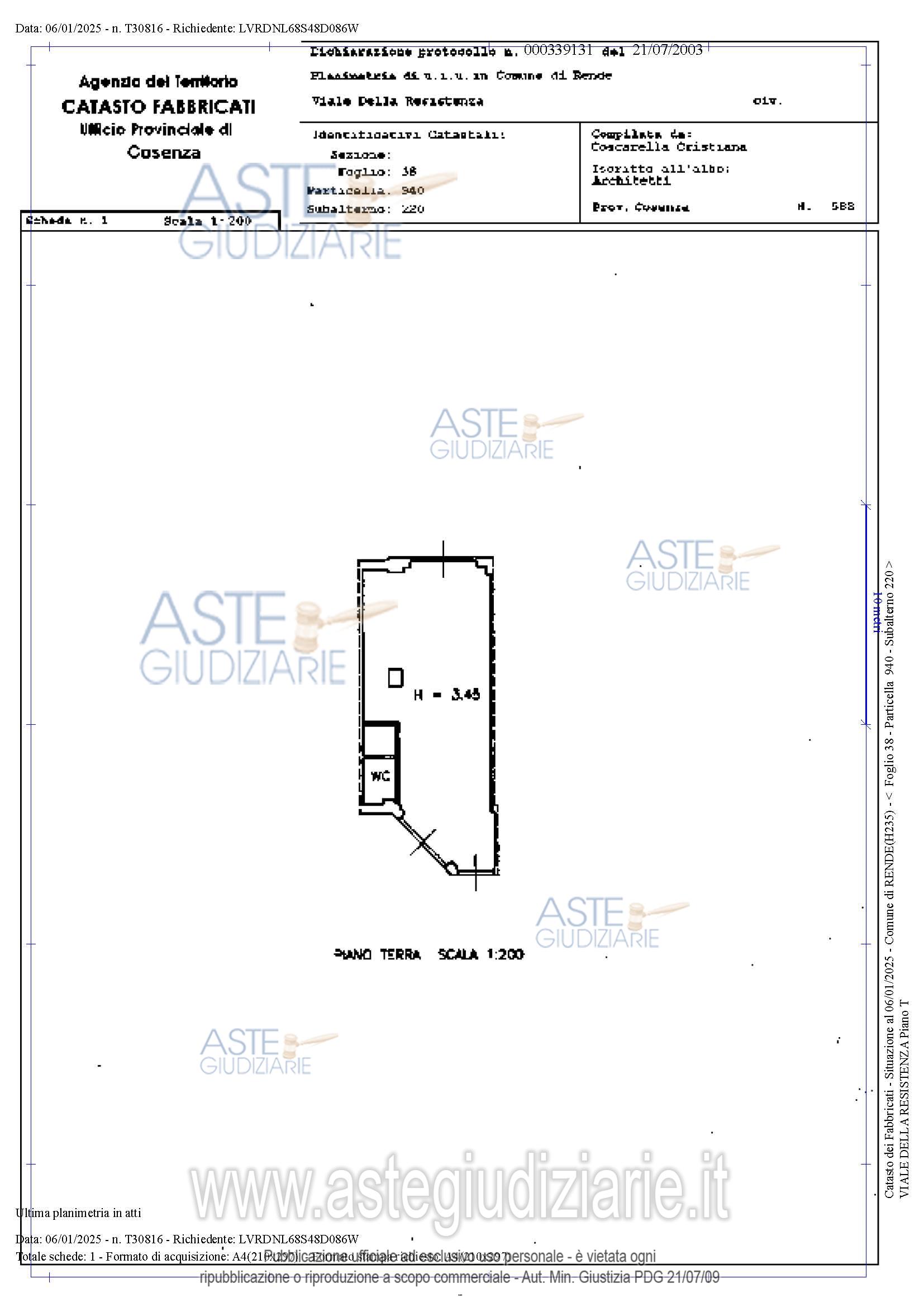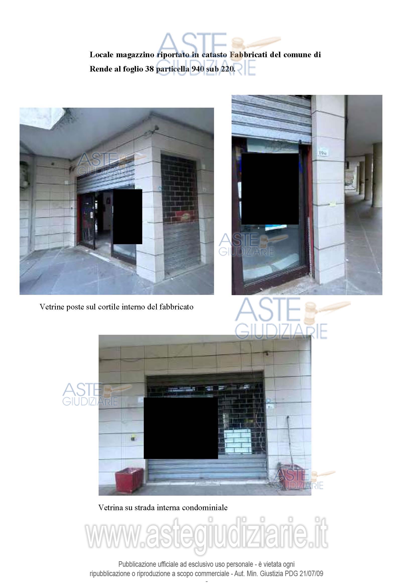 Vendita all'asta Senza incanto, con gara telematica sincrona mista - LOTTO 3: Locale commerciale al piano terra composto da n. 3 vetrine identificate ai nn. 19/M e 19/N sul cortile interno e 11/M sul lato opposto a Via Fratelli Bandiera. Consistenza 72 mq. Prezzo base € 61.952,00 (offerta minima € 46.464,00). Data vendita 20/03/2026 ore 10:45. Giudice Dott. Assunta Gioia. Professionista delegato alla vendita Dott. Maria Angela Baldo - Email "mariaangelabaldo@virgilio.it"; Tel. 3382281118. Custode Giudiziario Dott. Maria Angela Baldo - Email "mariaangelabaldo@virgilio.it"; Tel. 3382281118. Rif. Tribunale di Cosenza - Espropriazione immobiliare (cartabia) n. 139/2024
