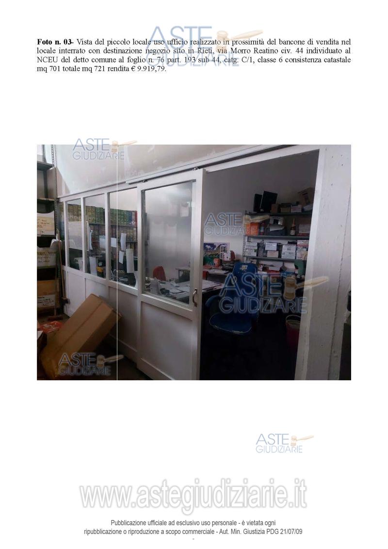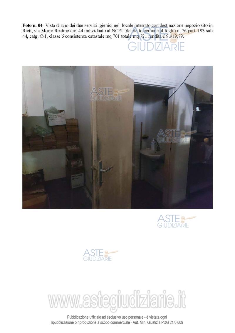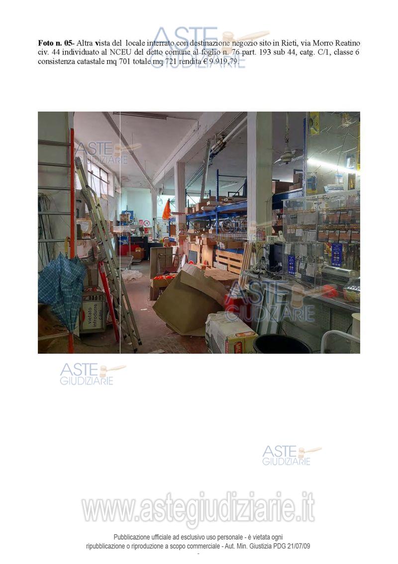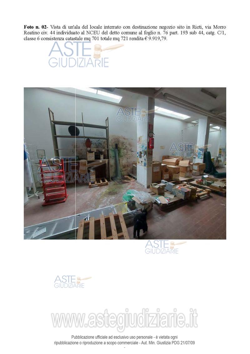 Vendita all'asta Senza incanto, con gara telematica asincrona - LOTTO UNICO: ampio locale interrato con servizi igienici, con accesso tramite rampa in cemento o scala metallica. Prezzo base € 102.431,25 (offerta minima € 76.823,44). Data inizio operazioni di vendita: 11/05/2026 ore 10:00. Giudice Marilina Guglielmi. Professionista delegato alla vendita Avv. Francesca Morgante - Email "avvfmorgante@libero.it"; Cell. 3383680049. Custode Giudiziario Avv. Francesca Morgante - Email "avvfmorgante@libero.it"; Cell. 3383680049. Rif. Tribunale di Rieti - Esecuzione immobiliare post legge 80 n. 34/2023