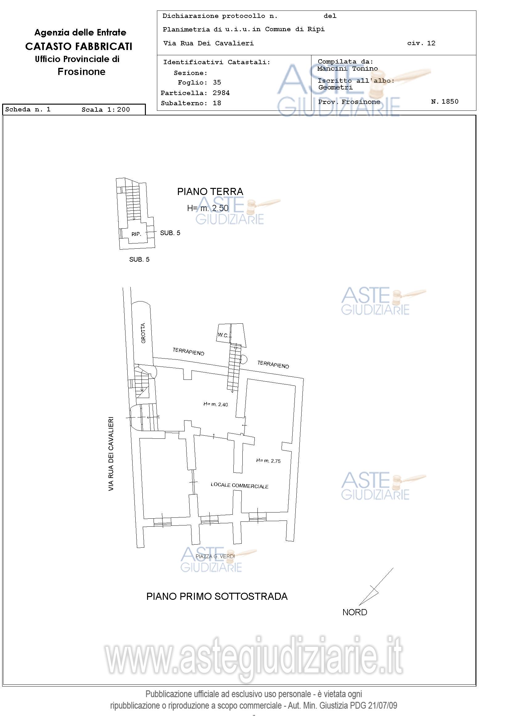 Vendita all'asta Senza incanto, con gara telematica asincrona - LOTTO 5: L'immobile oggetto di pignoramento è un'unità immobiliare ad uso commerciale (cat. catastale C/1 - negozi botteghe), ubicata in una zona centrale del comune di Ripi, in provincia di Frosinone, precisamente in Via Rua Dei Cavalieri. L'immobile è inserito in un contesto urbano a connotazione storica con alta densità edilizia ed a prevalente destinazione residenziale. Prezzo base € 45.942,20 (offerta minima € 34.456,65). Data inizio operazioni di vendita: 08/04/2026 ore 15:30. Giudice Simona Di Nicola. Professionista delegato alla vendita Avv. Gioia Calabrò - Email "gioia.calabro@gmail.com"; Tel. 0775853100. Custode Giudiziario Avv. Gioia Calabrò - Email "gioia.calabro@gmail.com"; Tel. 0775853100. Rif. Tribunale di Frosinone - Esecuzione immobiliare post legge 80 n. 21/2023