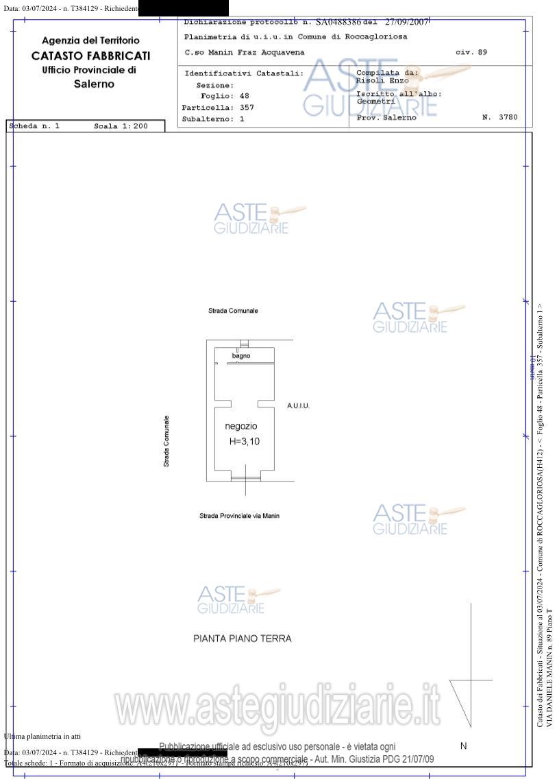 Vendita all'asta Senza incanto, con gara telematica asincrona - LOTTO 1: Lotto n. 1 - Immobile sito in Roccagloriosa (SA), in via Marin n.89, riportato in Catasto Fabbricati alFoglio 48, particella n.357 sub 1, categoria C/1, piano T, classe 07, consistenza 33 mq,R.C. 339,16. Prezzo base € 23.214,00 (offerta minima € 17.410,50). Data inizio operazioni di vendita: 08/04/2026 ore 11:00. Giudice Dott. Roberta Giglio. Professionista delegato alla vendita Dott. Giorgio Esposito - Email "giorgio.esposito2@odcecnapoli.it". Custode Giudiziario Dott. Giorgio Esposito - Email "esposito__g@outlook.com"; Cell. 3389748892; Tel. 0815751434. Rif. Tribunale di Vallo della Lucania - Esecuzione immobiliare post legge 80 n. 69/2023