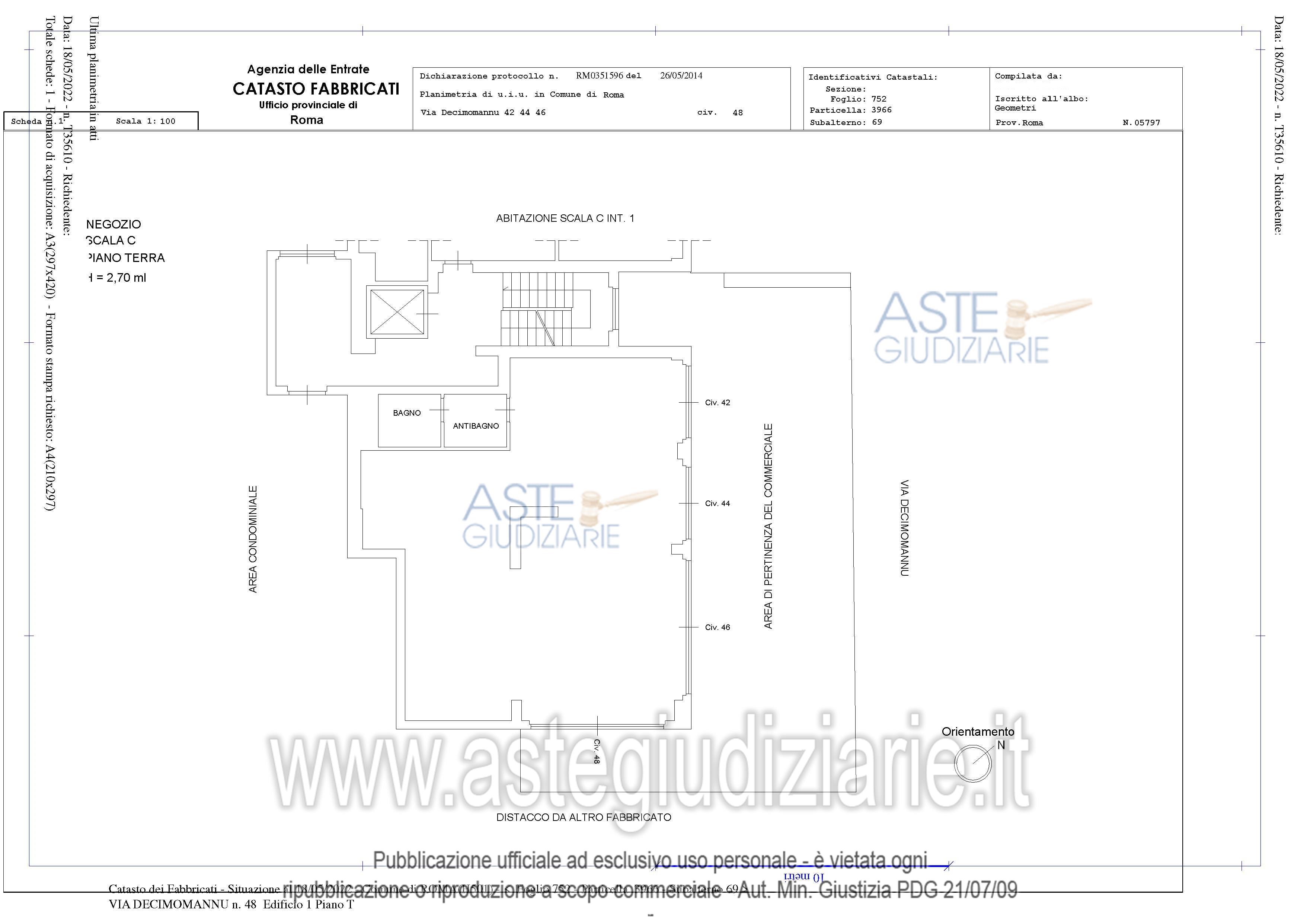 Vendita in attesa dell'emissione del nuovo bando d'asta. LOTTO 1: Piena proprietà superficiaria (1/1) di locale commerciale in Roma, via Decimomannu n. 48, al piano terra, lotto J, edificio 1, avente una superficie lorda di circa 130 mq. Attualmente così composto in pianta di forma ad “L”, un antibagno e bagno posti sul lato ovest in adiacenza al vano scala ed all’ascensore dell’edificio. Ultimo prezzo base € 200.216,25. Giudice Dott. Andrea Petteruti. Rif. Tribunale di Frosinone - Nuovo concordato preventivo n. 1/2012