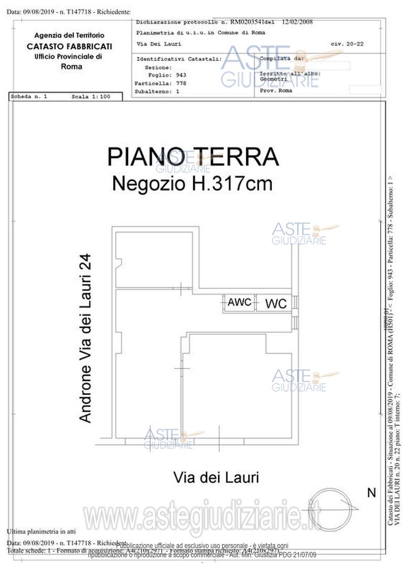 Vendita all'asta Senza incanto, con gara telematica asincrona - LOTTO 1: Negozio quartiere Centocelle - Roma. Prezzo base € 57.600,00 (offerta minima € 43.200,00). Data inizio operazioni di vendita: 20/10/2025 ore 14:00. Giudice Dott. Fernando Scolaro. Professionista delegato alla vendita Dott. Roberto Capitanelli. Custode Giudiziario Ivg Di Roma Srl - Email "pvp@visiteivgroma.it"; Tel. 0689569801. Rif. Tribunale di Roma - Esecuzione immobiliare post legge 80 n. 104957/1999