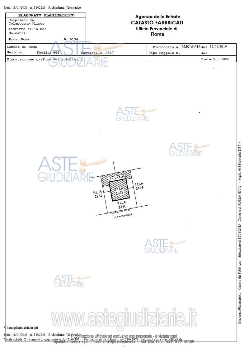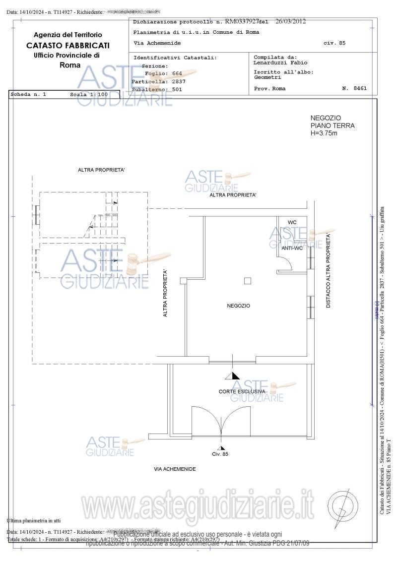 Vendita all'asta Senza incanto, con gara telematica asincrona - LOTTO UNICO: Quota pari a 1/1 del diritto di intera proprietà su locale negozio sito in Roma – Via Achemenide n. 85, piano terra, con accesso dalla corte esclusiva al piano strada. Prezzo base € 58.880,00 (offerta minima € 44.160,00). Data inizio operazioni di vendita: 24/03/2026 ore 14:00. Giudice Lauropoli. Professionista delegato alla vendita Avv. Maria Elena Taruffi. Custode Giudiziario Ivg Di Roma Srl - Email "pvp@visiteivgroma.it"; Tel. 0689569801. Rif. Tribunale di Roma - Espropriazione immobiliare (cartabia) n. 228/2024