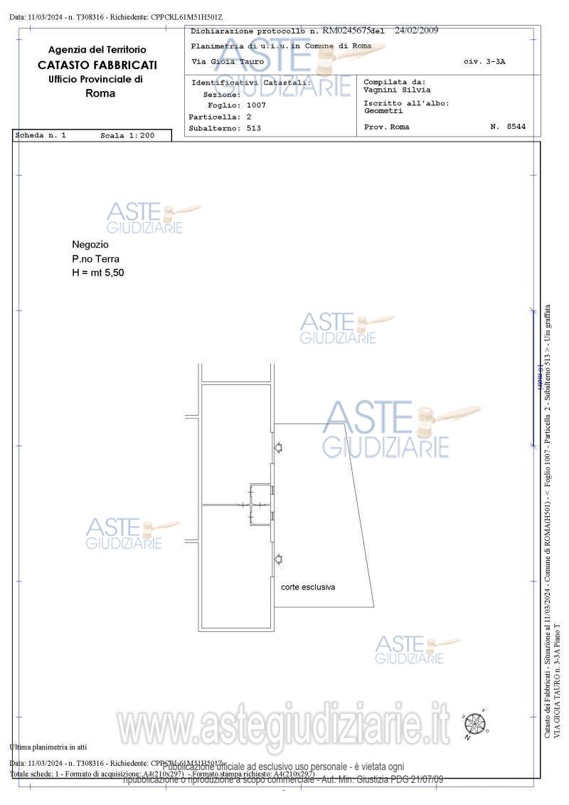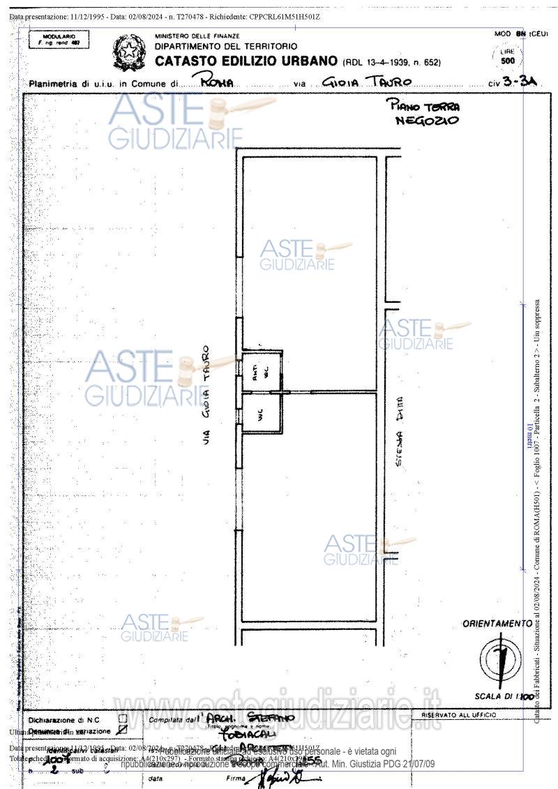 Vendita all'asta Senza incanto, con gara telematica asincrona - LOTTO 1: Locale a uso commerciale sito in Roma, via Gioia Tauro,3-3/A, avente una superficie lorda di 93 mq., in catasto alla sezione C, foglio 1007, particella 2, subalterno 513 graffato subalterno 514 (già censito con il subalterno 2), categoria C/1, rendita € 2.360,00. Prezzo base € 85.960,00 (offerta minima € 64.470,00). Data inizio operazioni di vendita: 20/11/2025 ore 14:00. Giudice Dott. Giuseppe Lauropoli. Professionista delegato alla vendita Avv. Luca Bernardini. Custode Giudiziario Ivg Di Roma Srl - Email "pvp@visiteivgroma.it"; Tel. 0689569801. Rif. Tribunale di Roma - Esecuzione immobiliare post legge 80 n. 1036/2023