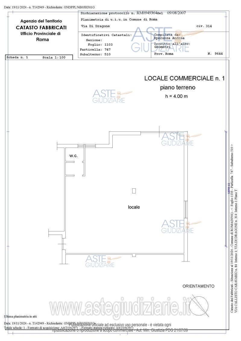 Vendita all'asta Senza incanto, con gara telematica asincrona - LOTTO UNICO: Quota pari a 1/1 del diritto di proprietà su Locale commerciale ubicato a Roma (RM) - Via di Dragone n. 314 (angolo via Callisto Caravario n. 84), interno 1, piano T. identificato al Catasto Fabbricati del Comune di Roma al foglio n. 1103 part. 747 sub. 510, categoria C/1, classe 9, z.c. 6. Confina con un altra proprietà, con il vano scala e con via di Dragone.Il tutto come meglio descritto nell’elaborato peritale depositato in atti e nella descrizione del compendio riportata con l'Ordinanza di delega. Prezzo base € 69.600,00 (offerta minima € 52.200,00). Data inizio operazioni di vendita: 09/04/2026 ore 10:00. Giudice Dott. Miriam Iappelli. Professionista delegato alla vendita Avv. Giuseppe Lettera. Custode Giudiziario Ivg Di Roma Srl - Email "pvp@visiteivgroma.it"; Tel. 0689569801. Rif. Tribunale di Roma - Esecuzione immobiliare post legge 80 n. 1077/2022