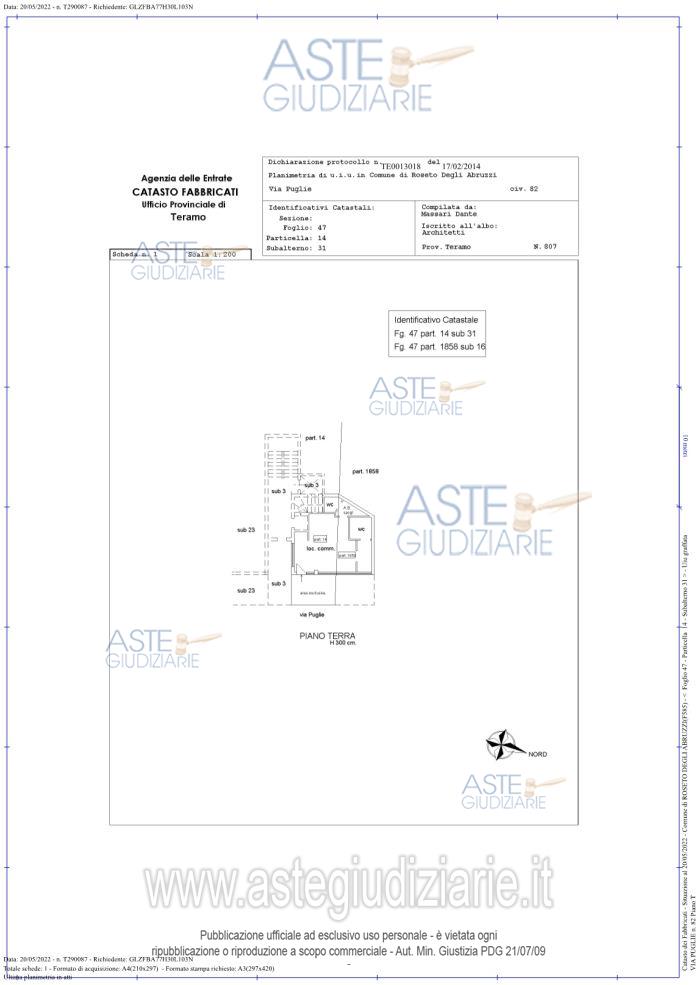 Vendita all'asta Senza incanto, con gara telematica asincrona - LOTTO 1: Diritti pari alla piena proprietà (1/1) del locale commerciale ubicato a Roseto degli Abruzzi (TE), in Via Puglie, n. 86 bis, posto al piano terra di palazzina residenziale a maggiore consistenza. Lo stesso, risulta costituito da locale commerciale, due bagni, uno spogliatoio per una superficie complessiva lorda di 37 mq circa e area esclusiva (balcone scoperto) per una superficie complessiva di 17 mq circa. Prezzo base € 62.000,00 (offerta minima € 46.500,00). Data inizio operazioni di vendita: 12/11/2025 ore 15:30. Professionista delegato alla vendita Avv. Laura Quaresimale - Email "lauraquaresimale@hotmail.it". Custode Giudiziario Avv. Laura Quaresimale - Email "lauraquaresimale@hotmail.it". Rif. Tribunale di Teramo - Esecuzione immobiliare post legge 80 n. 163/2021