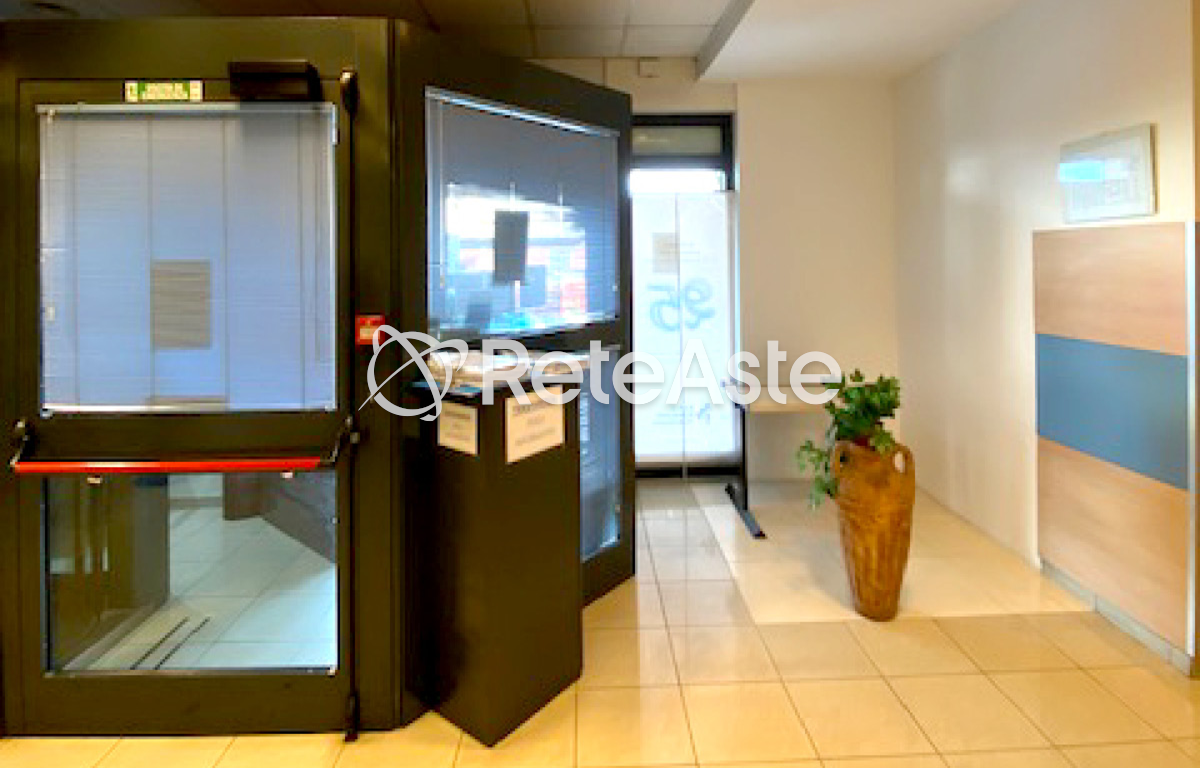 Two premises located in a good position are being put up for sale, the first one on the ground floor with access from Via Passanti, covering approximately 533 sqm. It also has an adjoining porch of about 50 sqm. The floors are made of glossy glazed tiles. The outer fixtures for entering the premises are electronically revolving with an incorporated alarm system; additionally, panic doors made of colored aluminum frames with glass leaf are present on the sides. The division of individual workspaces is currently done with self-supporting paneling and finishes in birch laminate wood. All premises have a suspended ceiling with mineral fiber panels. A staircase, located in the area of the administrative offices on the ground floor, leads to the second premises of approximately 337 sqm., located in the basement where the facilities and subservices are located, among other things. This basement level can also be accessed from Via Aielli through a ramp reaching a space in front of the premises, which has been set up for loading and unloading goods and documents. The floors in the basement are of the stoneware type. The closing doors of the compartments in the basement are fire doors with panic bars. The real estate complex will be available from January 31, 2024.