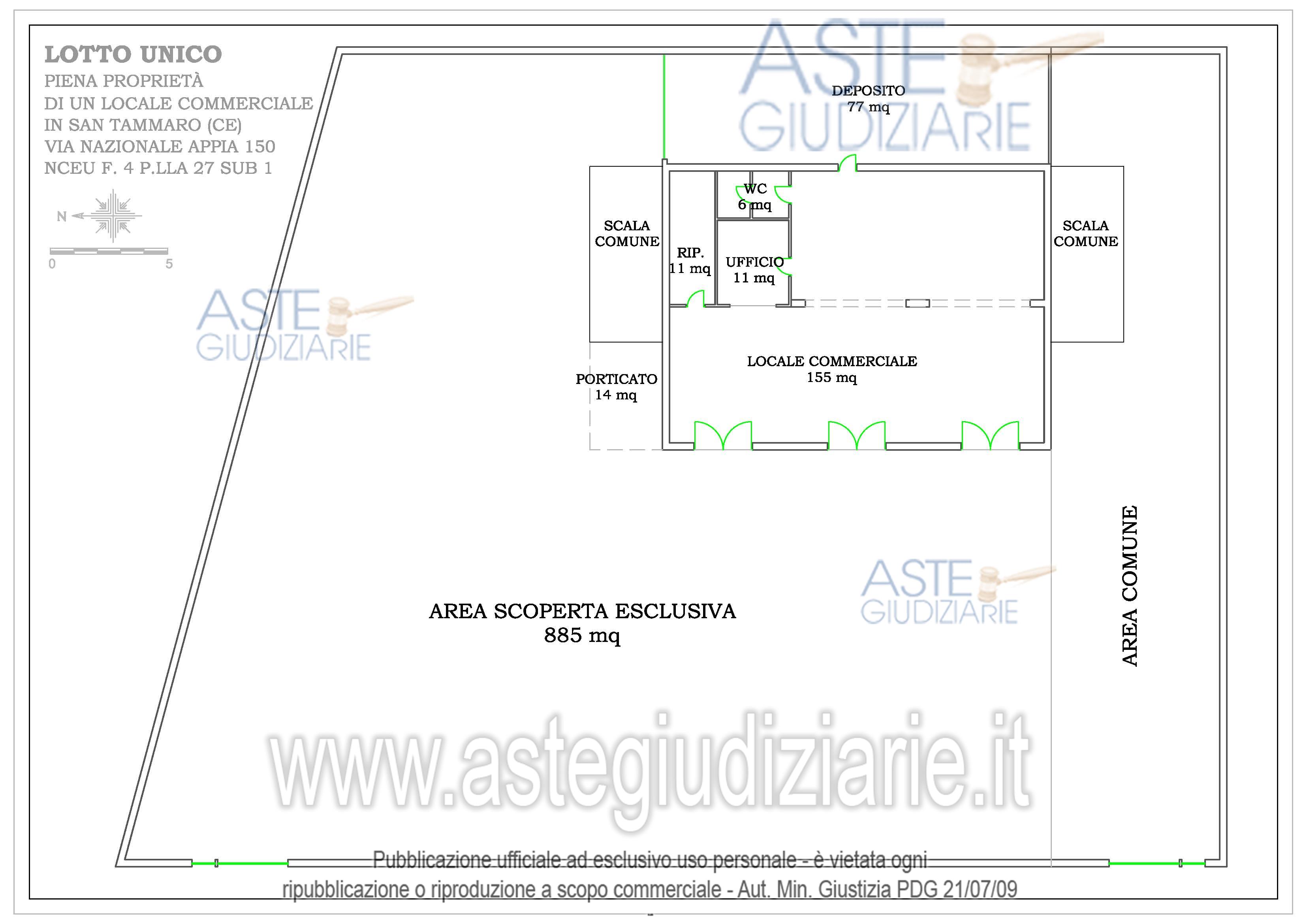 Vendita all'asta Senza incanto, con gara telematica asincrona - LOTTO UNICO: Piena ed intera proprietà di un locale commerciale al piano terra e del pertinenziale spazio scoperto, con i proporzionali diritti di comproprietà sulle parti comuni del fabbricato, in San Tammaro (CE), località Epitaffio, via Nazionale Appia n. 150, costituito da un locale principale da cui si accede: ad un ufficio, ad un wc con anti wc e ad un ripostiglio, e da un deposito retrostante; tot. sup. commerciale 283,75 mq. Prezzo base € 82.266,00 (offerta minima € 61.700,00). Data inizio operazioni di vendita: 26/11/2025 ore 11:00. Giudice Dott. Elmelinda Mercurio. Professionista delegato alla vendita Avv. Sabatino Madonna - Email "sabatino.madonna@legalecm.it"; Tel. 08231656102. Custode Giudiziario Avv. Sabatino Madonna - Email "sabatino.madonna@legalecm.it"; Tel. 08231656102. Rif. Tribunale di Santa Maria Capua Vetere - Esecuzione immobiliare post legge 80 n. 137/2020