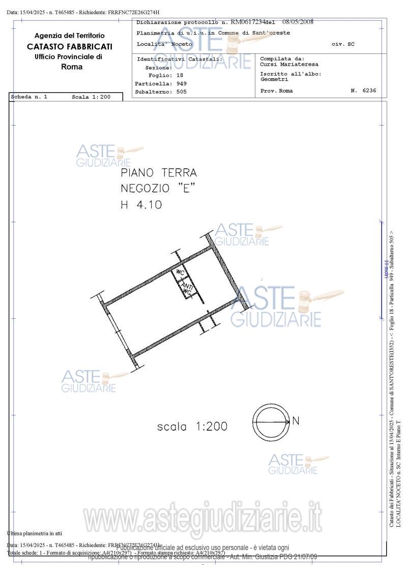 Vendita all'asta Senza incanto, con gara telematica asincrona - LOTTO UNICO: Diritto di proprietà superficiaria su locale commerciale ubicato a Sant'Oreste (RM) - Via Noceto, interno E, piano T. Prezzo base € 57.500,00 (offerta minima € 43.125,00). Data inizio operazioni di vendita: 28/05/2026 ore 12:00. Professionista delegato alla vendita Dott. Anna Maria Salta - Email "saltaannamaria@gmail.com"; Cell. 3466782573. Custode Giudiziario Ivg Di Roma Srl - Email "pvp@visiteivgroma.it"; Tel. 0689569801. Rif. Tribunale di Tivoli - Espropriazione immobiliare (cartabia) n. 9/2025