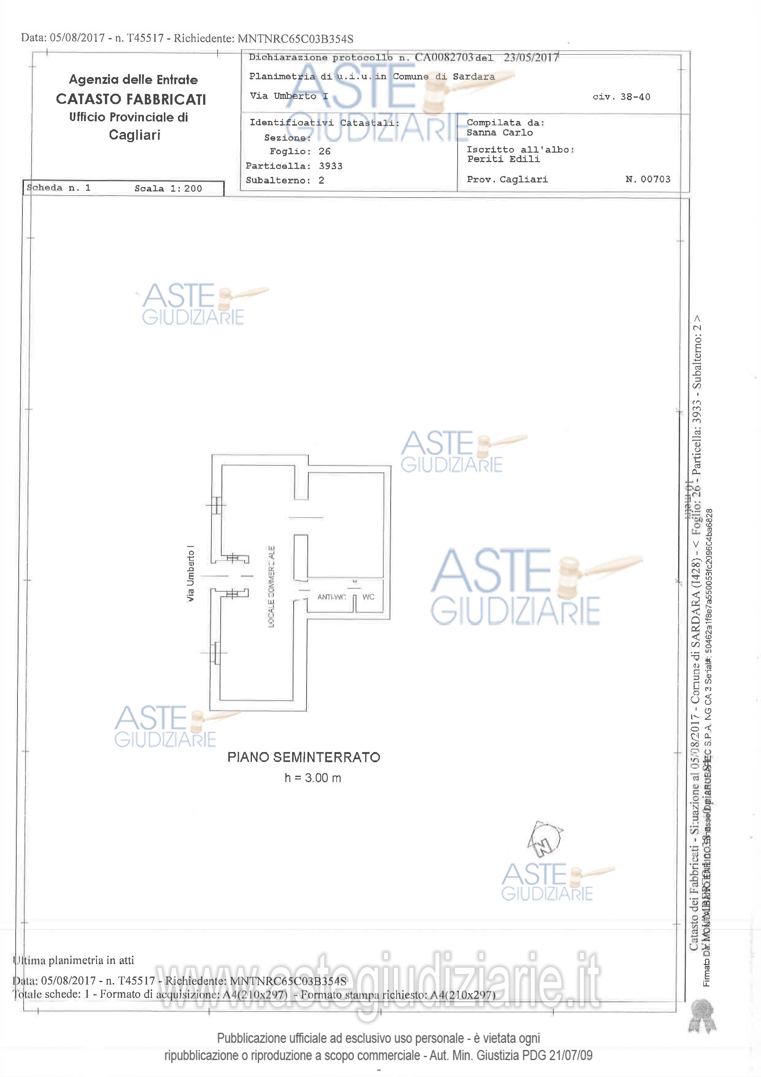 Vendita all'asta Senza incanto, con gara telematica asincrona - LOTTO 2: Quota pari all’intero del diritto di proprietà del locale al piano terra adibito a studio professionale facente parte del maggior fabbricato con accesso dalla Via Umberto n.38, composto da: ingresso, tre camere, servizio igienico. Prezzo base € 76.800,00 (offerta minima € 57.600,00). Data inizio operazioni di vendita: 03/03/2026 ore 09:00. Giudice Dott. Silvia Cocco. Professionista delegato alla vendita Giuditta Grilletti - Email "ufficiouniconotai@pec.it"; Tel. 07060222574. Custode Giudiziario Ivg Cagliari - Email "ivg.visiteimmobili@tiscali.it"; Tel. 0702299036. Rif. Tribunale di Cagliari - Esecuzione immobiliare post legge 80 n. 24/2015