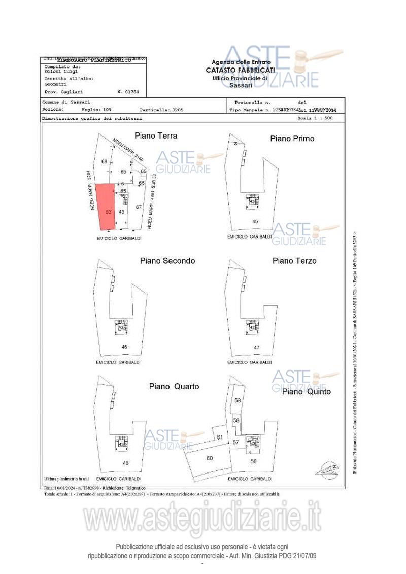 Vendita all'asta Senza incanto, con gara telematica asincrona - LOTTO 1: Locale commerciale ubicato a Sassari (SS) - Piazza Emiciclo Garibaldi 21, distinto in NCEU al Fg. 109, Part. 3205, Sub. 63, Piano Terra, Categoria C1, superficie catastale mq 68, compresa quota indivisa dell’area comune (condominiale) costituita da corte e porticati, distinta in NCEU al Fg 109, Part. 3205, Sub 65, cat. F/3, da intendersi parte comune dell’intero fabbricato distinto alla particella 3205. Prezzo base € 69.300,00 (offerta minima € 47.975,00). Data inizio operazioni di vendita: 14/05/2026 ore 17:00. Professionista delegato alla vendita Avv. Pintore Pierpaolo - Email "pierpaolo.pintore@tiscali.it"; Cell. 3473500412; Tel. 079237725. Custode Giudiziario Istituto Vendite Giudiziarie Sassari - Email "visitaivgsassari@gmail.com"; Tel. 079260228. Rif. Tribunale di Sassari - Esecuzione immobiliare post legge 80 n. 92/2022