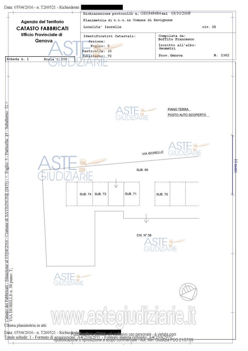 Vendita all'asta Senza incanto, con gara telematica sincrona mista - LOTTO 4: Comune di Savignone (GE), quota di proprietà pari al 100% di locale commerciale sito in Via Isorelle 34, composto dal locale principale, un disimpegno, un servizio igienico, con annessi posto auto e terrazzo, per una superficie commerciale lorda di 56,80 mq. Prezzo base € 17.718,75 (offerta minima € 13.289,06). Data vendita 10/12/2025 ore 13:30. Curatore Dott. Giorgio Dufour - Email "studio@giorgiodufour.com"; Cell. 3356925455. Rif. Tribunale di Genova - Fallimentare (nuovo rito) n. 33/2017