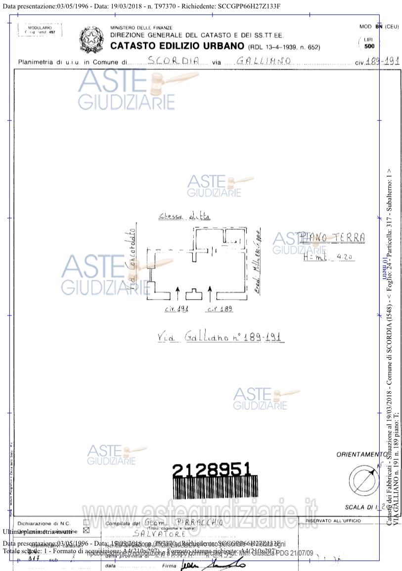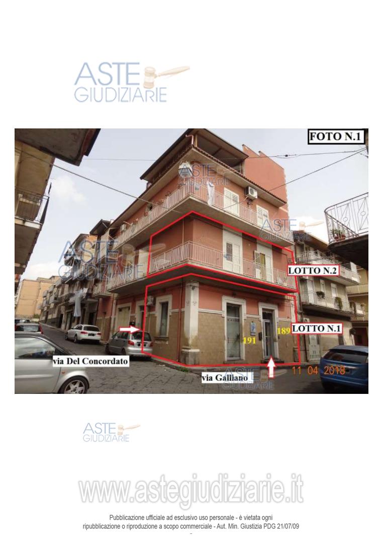 Vendita all'asta Senza incanto, con gara telematica sincrona mista - LOTTO 1: Unità immobiliare adibita a negozio (agenzia di spedizioni) sita nel comune di Scordia (Ct), Via Galliano nn. 189 e 191 (angolo via del Concordato), piano terra, mq 42, censita al N.C.E.U. al foglio 24, Part. 317, sub. 1, cat. C/1, classe 4, rendita €. 672,43; classe energetica: E. Prezzo base € 28.140,00 (offerta minima € 21.105,00). Data vendita 08/04/2026 ore 17:30. Professionista delegato alla vendita Avv. Salvatore Mannuzza - Email "salvo.mannuzza@tiscali.it"; Cell. 3396424076. Custode Giudiziario Avv. Salvatore Mannuzza - Email "salvo.mannuzza@tiscali.it"; Cell. 3396424076. Rif. Tribunale di Caltagirone - Esecuzione immobiliare post legge 80 n. 127/2017
