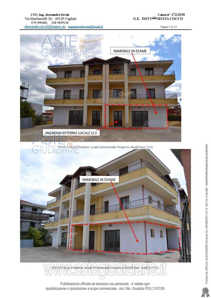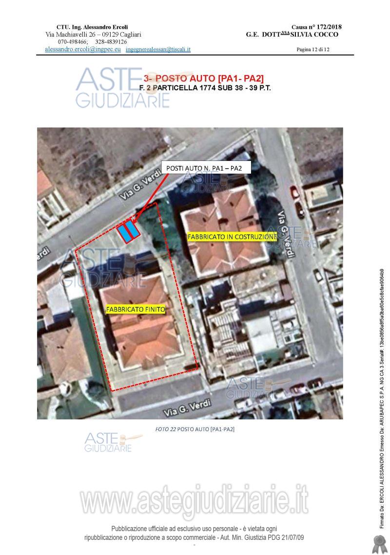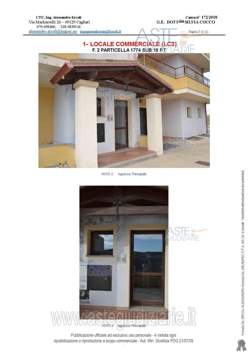 Vendita all'asta Senza incanto, con gara telematica asincrona - LOTTO 21: Quota pari all’intero del diritto di proprietà dell’unità immobiliare composta da locale commerciale al piano terra del fabbricato in Via Giuseppe Verdi Edificio A, interno 3, due cantine al piano seminterrato, due posti auto al piano terra. Prezzo base € 74.000,00 (offerta minima € 55.500,00). Data inizio operazioni di vendita: 13/02/2026 ore 11:00. Giudice Silvia Cocco. Professionista delegato alla vendita Dott. Antonio Garau - Email "ufficiouniconotai@pec.it"; Tel. 07060222574. Custode Giudiziario Ivg Cagliari - Email "ivg.visiteimmobili@tiscali.it"; Tel. 0702299036. Rif. Tribunale di Cagliari - Esecuzione immobiliare post legge 80 n. 172/2018