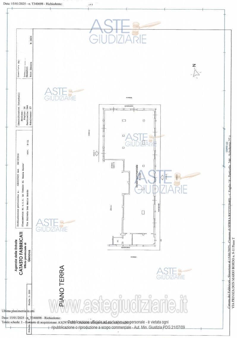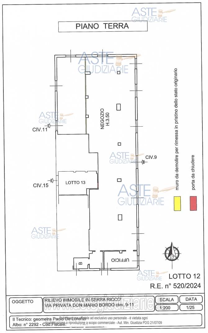 Vendita all'asta Senza incanto, con gara telematica sincrona mista - LOTTO 12: PIENA PROPRIETA' DI LOCALE AD USO NEGOZIO A SERRA RICCO' IN VIA PRIVATA DON MARIO BORDO 9-11 AL PIANO TERRA COMPOSTO DA GRANDE LOCALE CON ANNESSO BAGNO E ANTIBAGNO E LOCALE AD USO UFFICIO. SUPERFICIE CATASTALE 353 MQ CLASSE ENERGETICA G. Prezzo base € 177.450,00 (offerta minima € 133.087,50). Data vendita 26/03/2026 ore 12:00. Professionista delegato alla vendita Avv. Elio Sbisa - Email "elio.sbisa1@gmail.com"; Cell. 3395666960. Custode Giudiziario Dott. Ivg Sovemo Srl - Email "visitegenova@sovemo.com"; Tel. 0105299253. Rif. Tribunale di Genova - Esecuzione immobiliare post legge 80 n. 520/2024