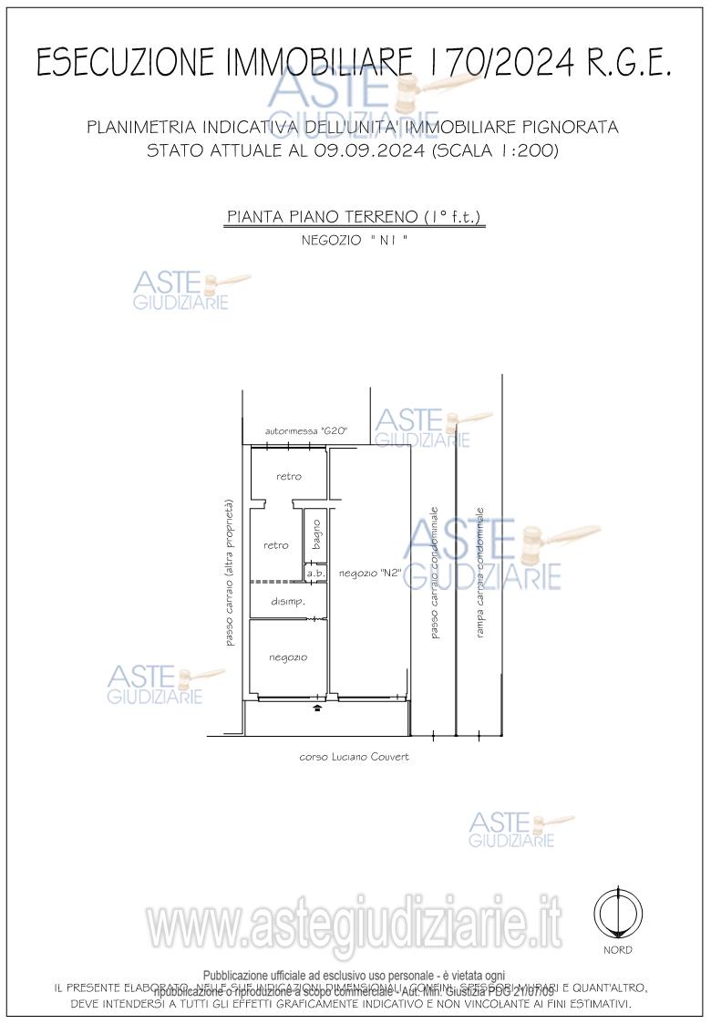 Vendita all'asta Senza incanto, con gara telematica asincrona - LOTTO UNICO: In Comune di SUSA (TO), Corso Luciano Couvert n. 18/F: - al piano terreno (1° f.t.): locale commerciale ad uso negozio con servizi igienici, retro e disimpegno. Prezzo base € 15.615,00 (offerta minima € 11.712,00). Data inizio operazioni di vendita: 14/04/2026 ore 10:00. Professionista delegato alla vendita Avv. Rosario Saccà - Email "avv.rosariosacca@gmail.com"; Tel. 0114337060. Custode Giudiziario Avv. Rosario Saccà - Email "avv.rosariosacca@gmail.com"; Tel. 0114337060. Rif. Tribunale di Torino - Espropriazione immobiliare (cartabia) n. 170/2024