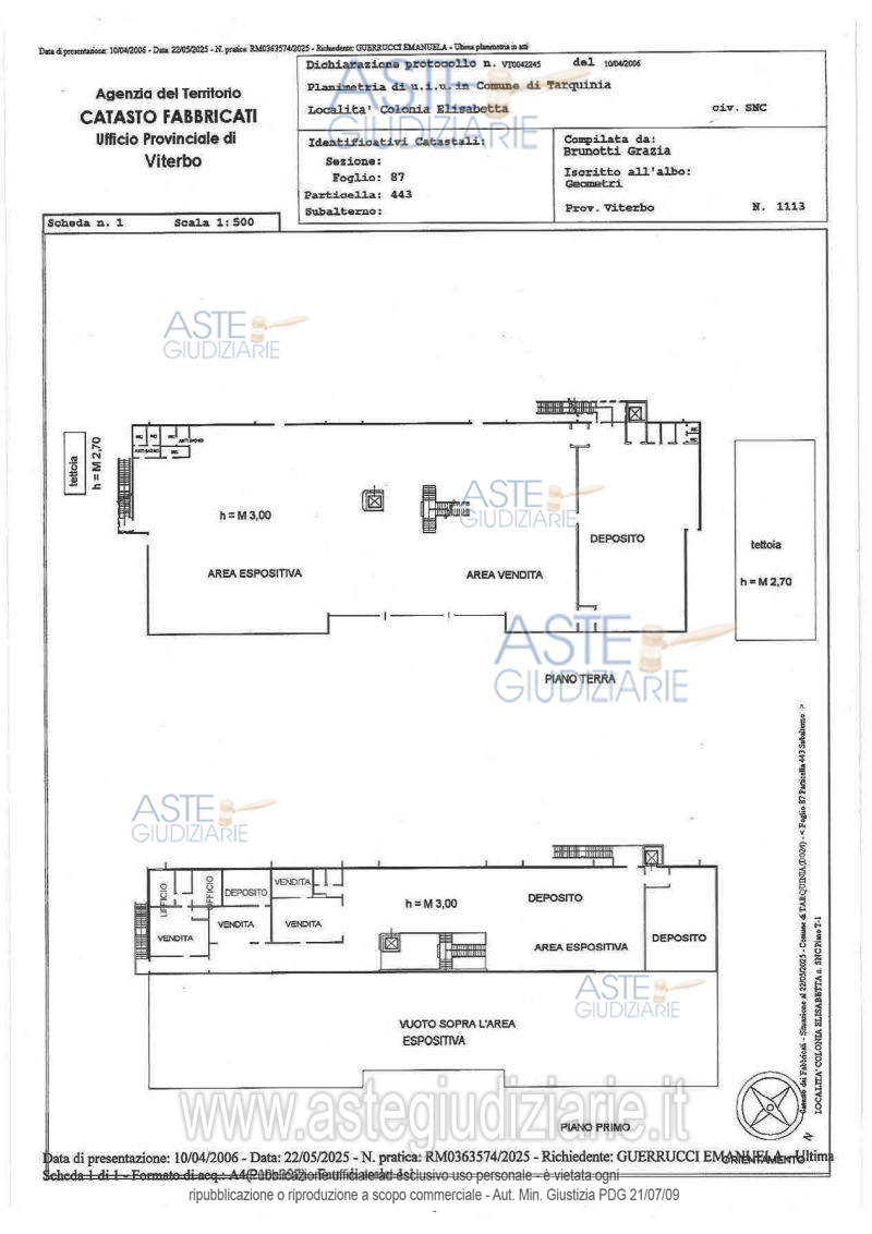 Vendita all'asta Senza incanto, con gara telematica asincrona - LOTTO UNICO: Capannone a uso commerciale ubicato nella zona industriale di Tarquinia con area di pertinenza esterna en. 4 accessi carrabili. Il capannone si articola internamente in 2 livelli: piano terra e primo piano, accessibile tramite un corpo scala e un ascensore. Esso è dotato di impianto idrico, elettrico, fognario e antincendio. L’immobile è rivestito esternamente con pannelli coibentati in lamiera zincata. Prezzo base € 1.900.000,00 (offerta minima € 1.425.000,00). Data inizio operazioni di vendita: 18/03/2026 ore 15:30. Giudice Palmaccio. Professionista delegato alla vendita Dott. Claudio Montini - Email "claudiomontini77@gmail.com"; Tel. 0766501774. Custode Giudiziario Dott. Claudio Montini - Email "claudiomontini77@gmail.com"; Tel. 0766501774. Rif. Tribunale di Civitavecchia - Esecuzione immobiliare post legge 80 n. 243/2016