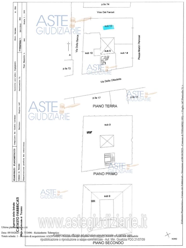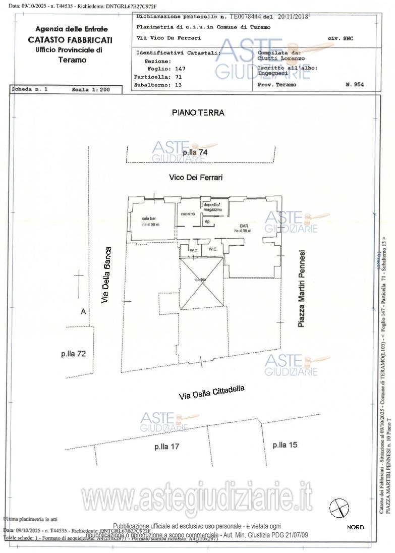 Vendita all'asta Senza incanto, con gara telematica asincrona - LOTTO 01: Diritti pari all’ intero della piena proprietà su “Locale commerciale” sito nel Comune di Teramo, angolo Piazza Martiri Pennesi/Vicolo dei Ferrari identificato nel N.C.E.U. nel Comune di Teramo al Fog. 147 – Part. 71 Sub. 13– Z.c.1– Cat. C/1– Cl. 12 – Cons. 82 m²– Sup. Cat. 97 m²– R.C. €. 3.227,03. Locale commerciale posto al piano terra, della superficie catastale di Mq. 97,00 circa, costituito da tre vani adibiti ad area bar, due servizi, ripostiglio, cucinino e deposito. Prezzo base € 96.000,00 (offerta minima € 72.000,00). Data inizio operazioni di vendita: 25/03/2026 ore 15:00. Professionista delegato alla vendita Avv. Odette Frattarelli - Email "odette.frattarelli@libero.it"; Tel. 086189478. Custode Giudiziario Dott. Eda Silvestrini - Email "eda.silvestrini@gmail.com"; Cell. 3290512413; Tel. 3290512413. Rif. Tribunale di Teramo - Esecuzione immobiliare post legge 80 n. 148/2025