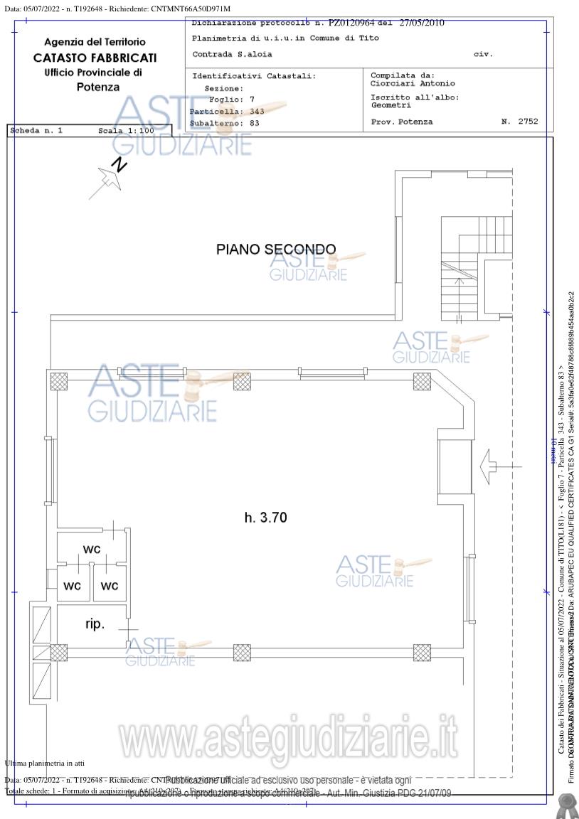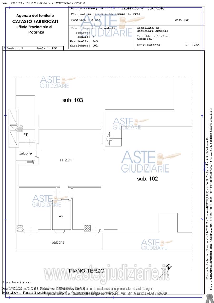 Custode Giudiziario: Avv. Antonio Lomonaco - Email "avv.lomonacoantonio@libero.it"; Tel. 0971/476444.