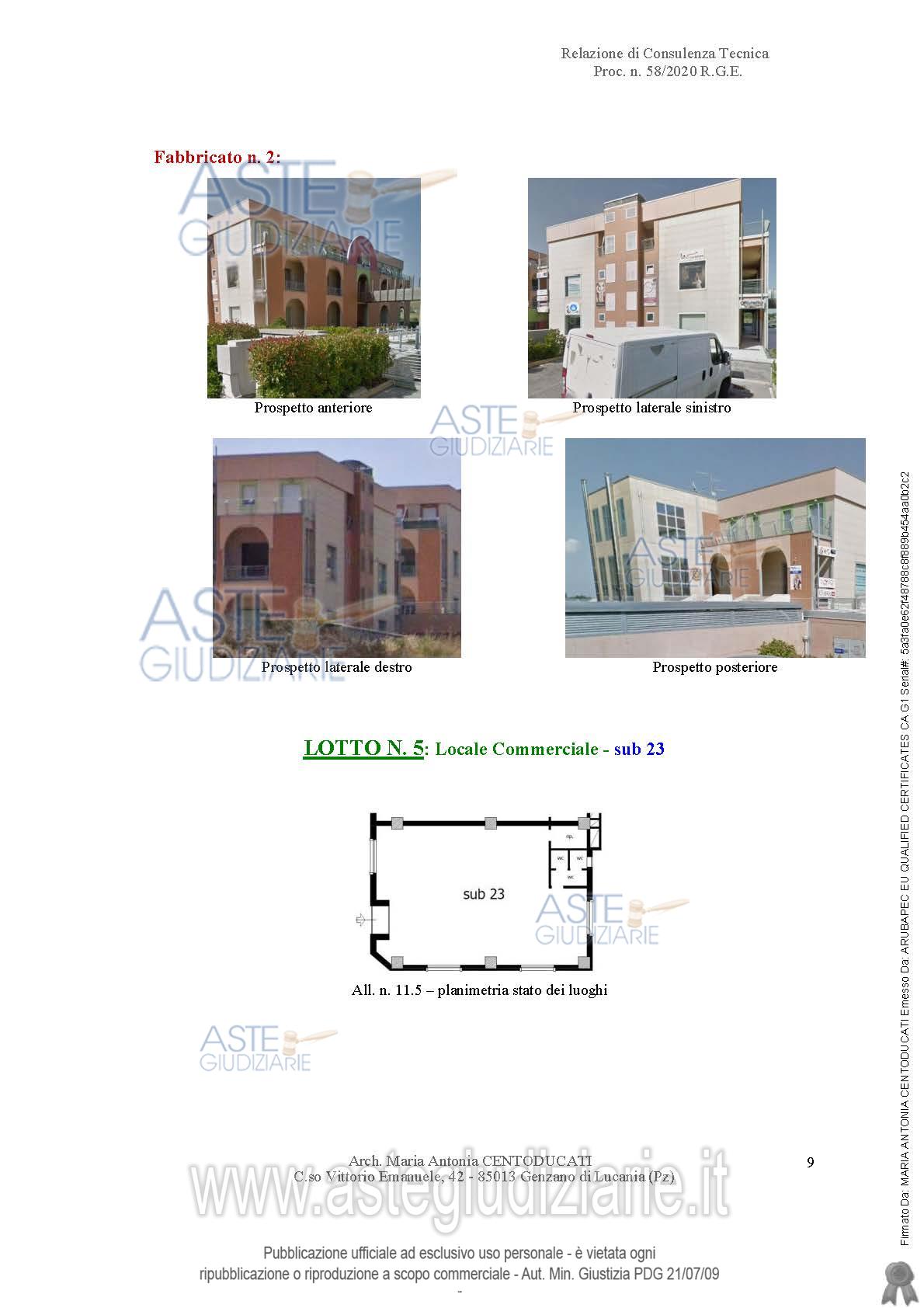 Vendita all'asta Senza incanto - LOTTO 5: diritti pari all’intero (1/1) in piena proprietà di un locale commerciale sito nel Comune di Tito (PZ) alla C.da Santa Loja, piano terra costituito da un locale adibito alla vendita, due bagni con relativo antibagno ed un ripostiglio. Prezzo base € 57.375,00 (offerta minima € 43.031,25). Data vendita 09/07/2026 ore 10:00. Professionista delegato alla vendita: Avv. Francesco Missanelli - Email "francescomissanelli@gmail.com"; Tel. 0971/443116.