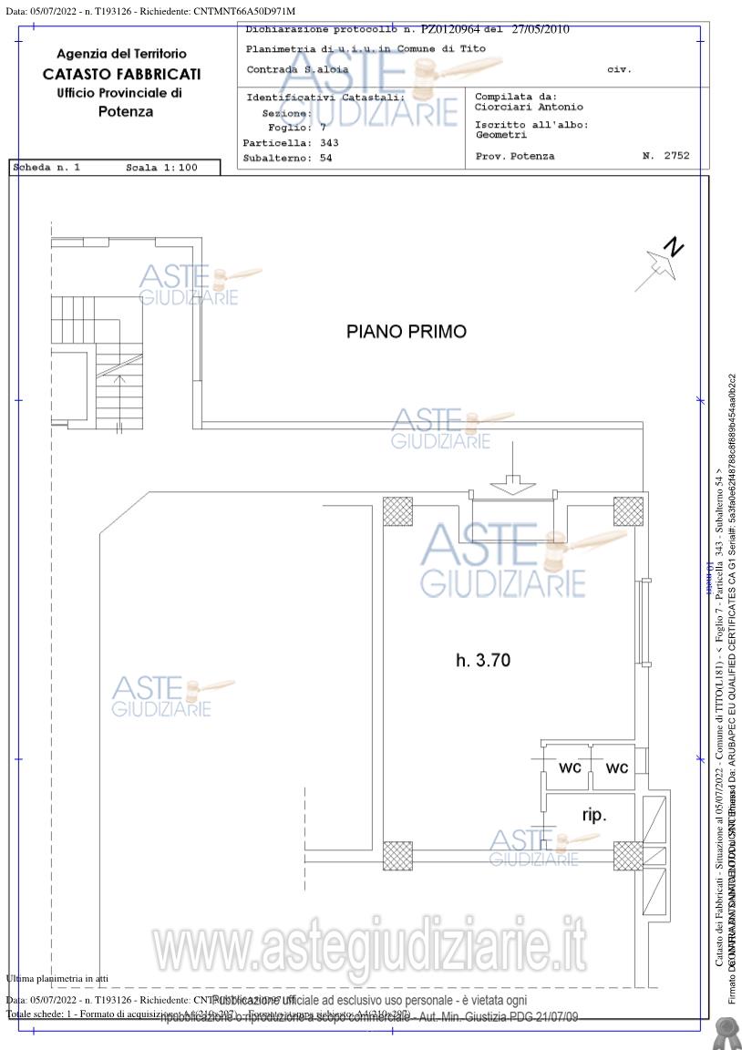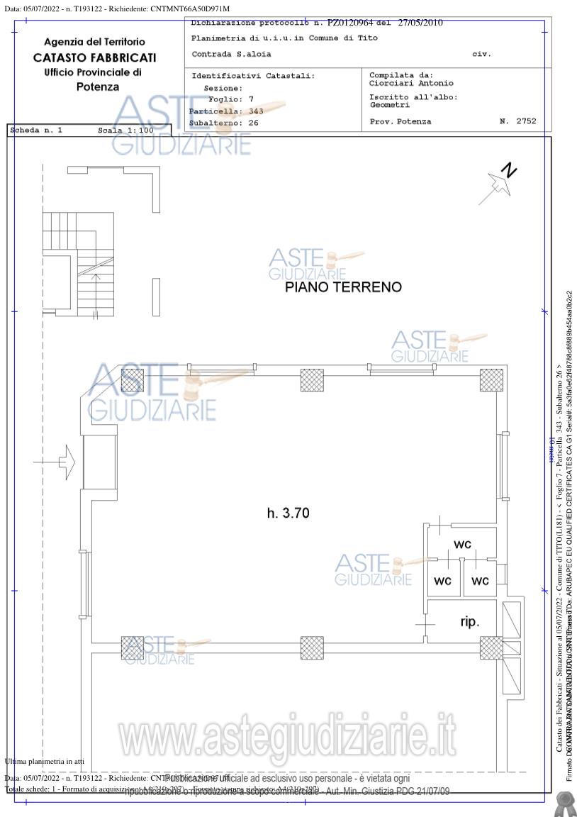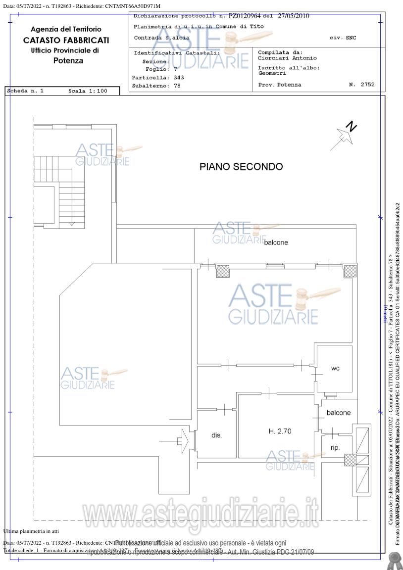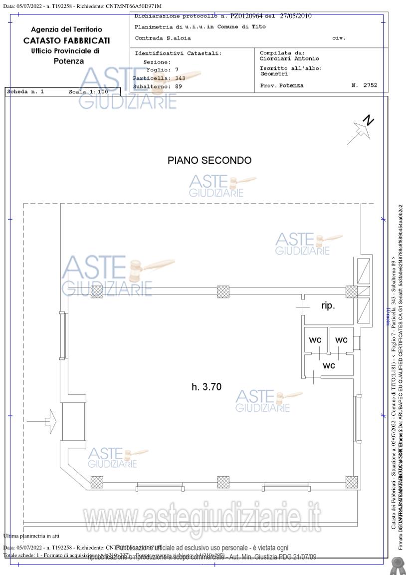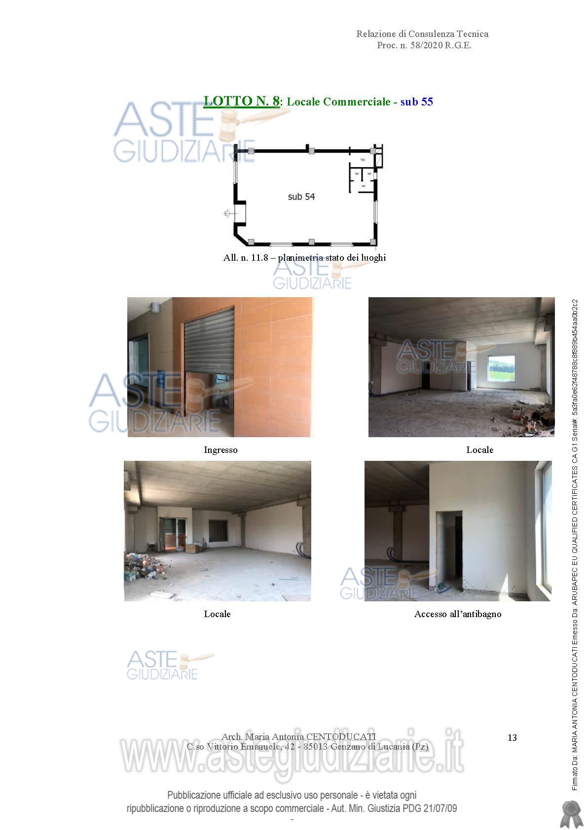 Vendita all'asta Senza incanto - LOTTO 8: diritti pari all’intero (1/1) in piena proprietà di un locale commerciale sito nel Comune di Tito (PZ) alla C.da Santa Loja, piano primo, costituito da un locale adibito alla vendita, due bagni con relativo antibagno ed un ripostiglio. Prezzo base € 57.375,00 (offerta minima € 43.031,25). Data vendita 09/07/2026 ore 10:00. Professionista delegato alla vendita: Avv. Francesco Missanelli - Email "francescomissanelli@gmail.com"; Tel. 0971/443116.