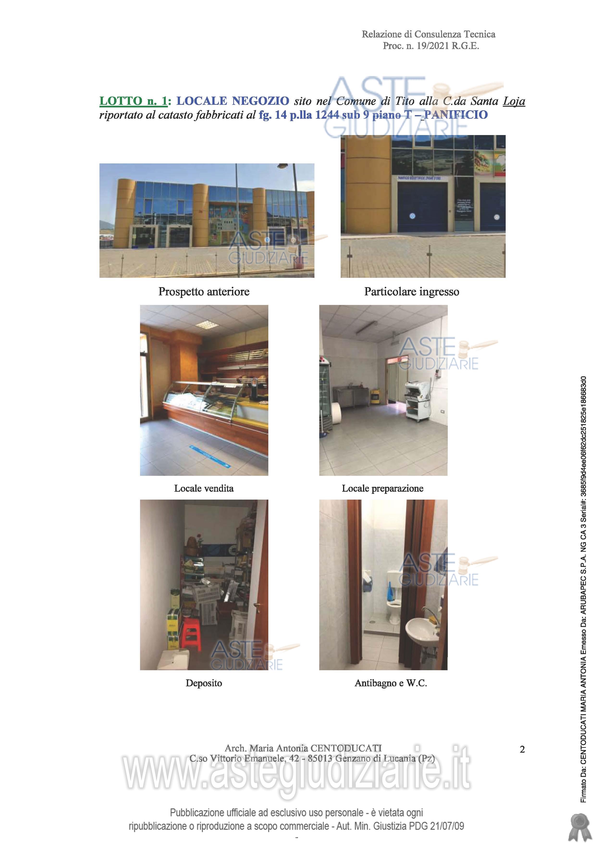 Vendita in attesa dell'emissione del nuovo bando d'asta. LOTTO 1: piena ed intera proprietà (1/1) di un locale commerciale di circa 85,50 mq. situato al piano terra di del fabbricato adibito ad attività commerciale situato alla c.da Santa Loja del comune di TITO (PZ); . Ultimo prezzo base € 67.000,00 (offerta minima € 50.250,00). Professionista delegato alla vendita Avv. Francesco Missanelli - Email "francescomissanelli@gmail.com"; Tel. 0971443116. Curatore Avv. Monica Dea De Luca - Email "avv.monicadeadeluca@gmail.com"; Tel. 0971287426. Custode Giudiziario Avv. Monica Dea De Luca - Email "avv.monicadeadeluca@gmail.com"; Tel. 0971287426. Rif. Tribunale di Potenza - Esecuzione immobiliare post legge 80 n. 19/2021