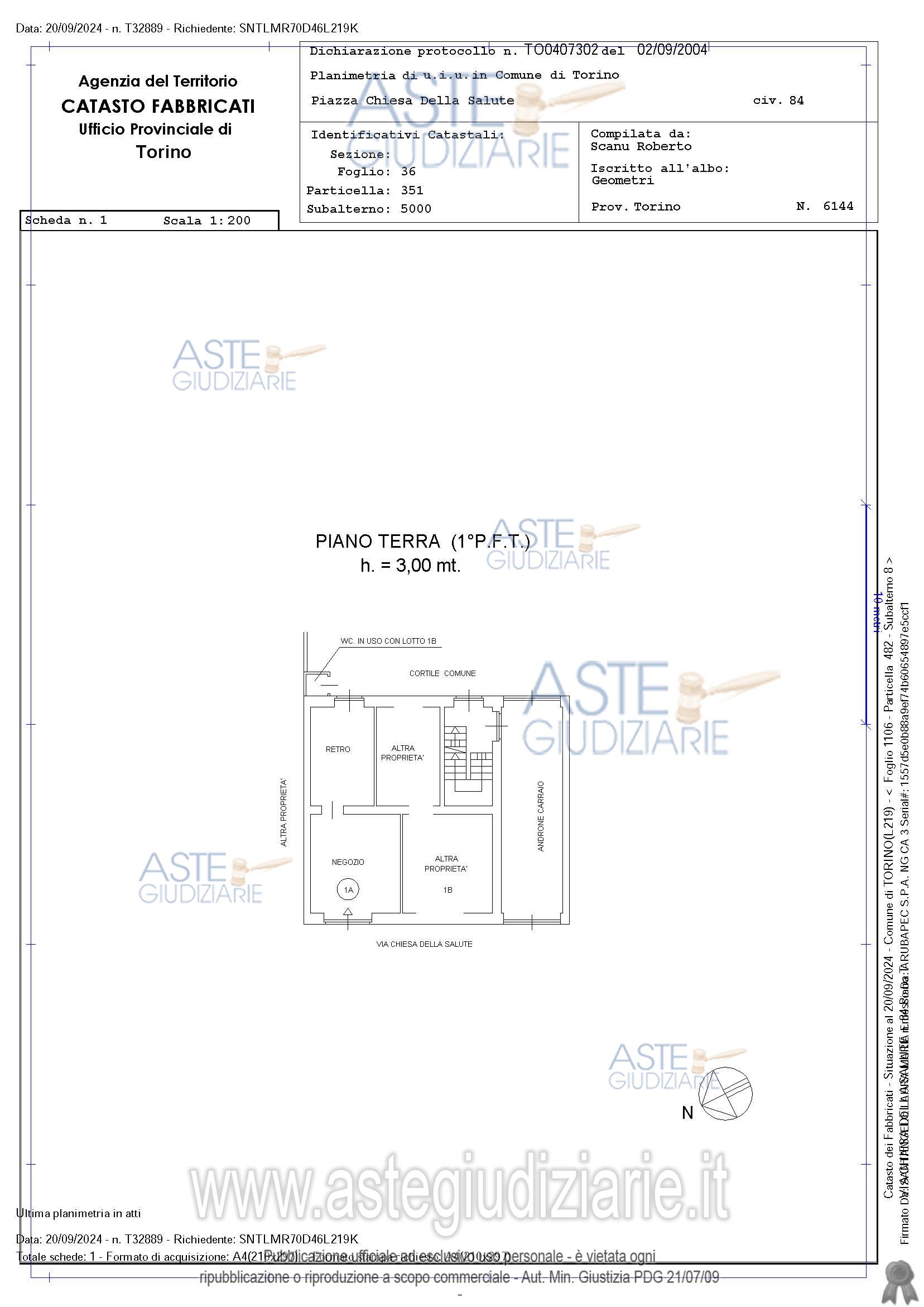 Vendita all'asta Senza incanto, con gara telematica asincrona - LOTTO UNICO: In Comune di TORINO (TO), unità immobiliare di tipo commerciale, sito in Via Chiesa della Salute civico numero 84, e precisamente: al piano terreno (primo fuori terra): negozio con retro, distinto dalla sigla “1A”. Il tutto alle seguenti coerenze: Via Chiesa della Salute, muro perimetrale, wc comune di cui infra, cortile e negozio “1B”, salvo veriori e come meglio in fatto. All’immobile in oggetto, compete l’uso, in comune con il negozio “1B”, del servizio igienico posto nel cortile. Prezzo base € 26.000,00 (offerta minima € 19.500,00). Data inizio operazioni di vendita: 15/06/2026 ore 14:00. Professionista delegato alla vendita Avv. Claudia Femia - Email "claudia.femia@libero.it"; Cell. 3408066318; Tel. 3408066318. Custode Giudiziario Ifir Piemonte Istituto Vendite Giudiziarie S.R.L. - Email "richieste.visite@ivgpiemonte.it"; Tel. 0114731714. Rif. Tribunale di Torino - Espropriazione immobiliare (cartabia) n. 358/2024