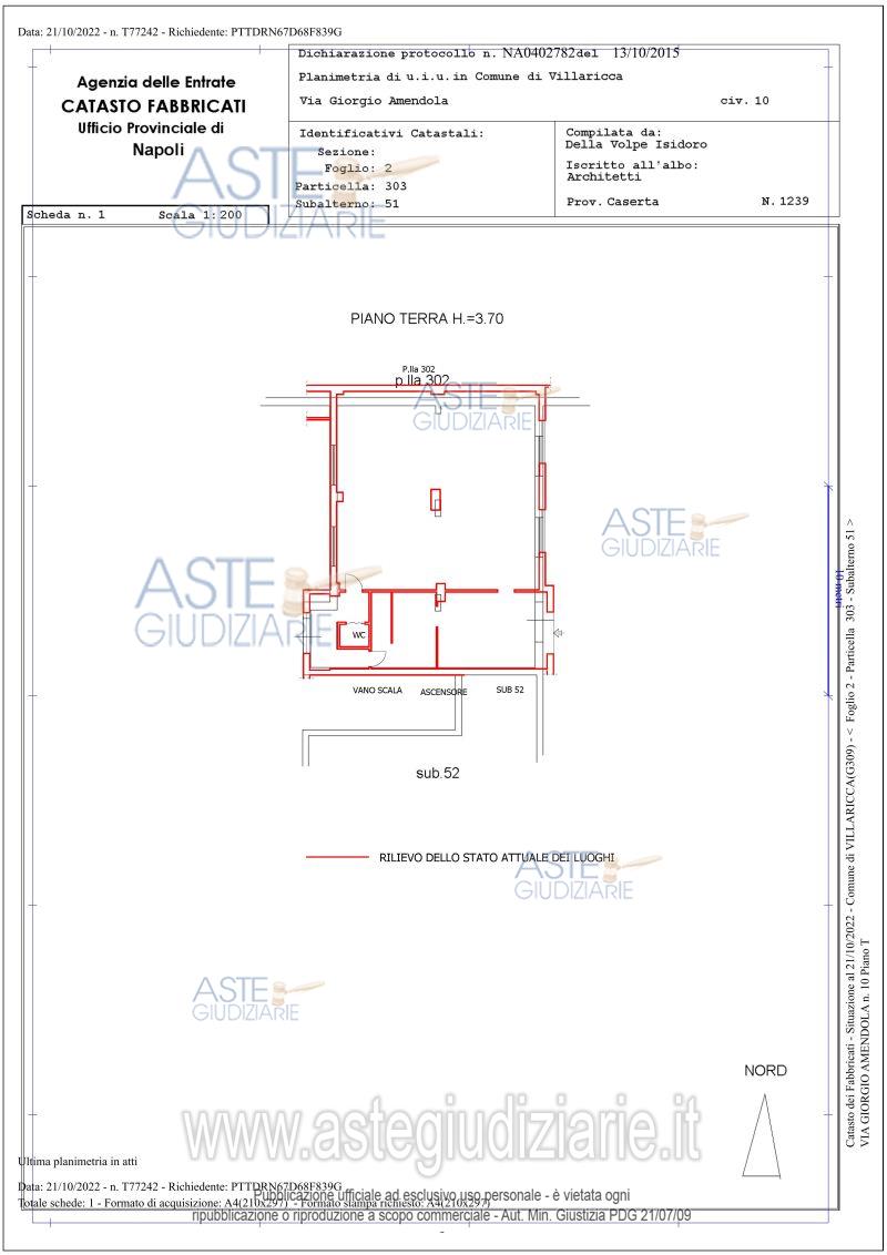 Vendita all'asta Senza incanto, con gara telematica asincrona - LOTTO 2: Proprietà superficiaria del terraneo sito in Villaricca (Na), Via G. Amendola s.n.c. (già civico 4), piano terra, piano terra, superficie globale mq. 52,22. Prezzo base € 42.188,00 (offerta minima € 31.641,00). Data inizio operazioni di vendita: 25/03/2026 ore 15:00. Professionista delegato alla vendita Avv. Diego Sorrentino - Email "diegosorrentino@gmail.com"; Cell. 3281790065; Tel. 3281790065. Custode Giudiziario Avv. Diego Sorrentino - Email "diegosorrentino@gmail.com"; Cell. 3281790065; Tel. 3281790065. Rif. Tribunale di Napoli Nord - Esecuzione immobiliare post legge 80 n. 292/2020