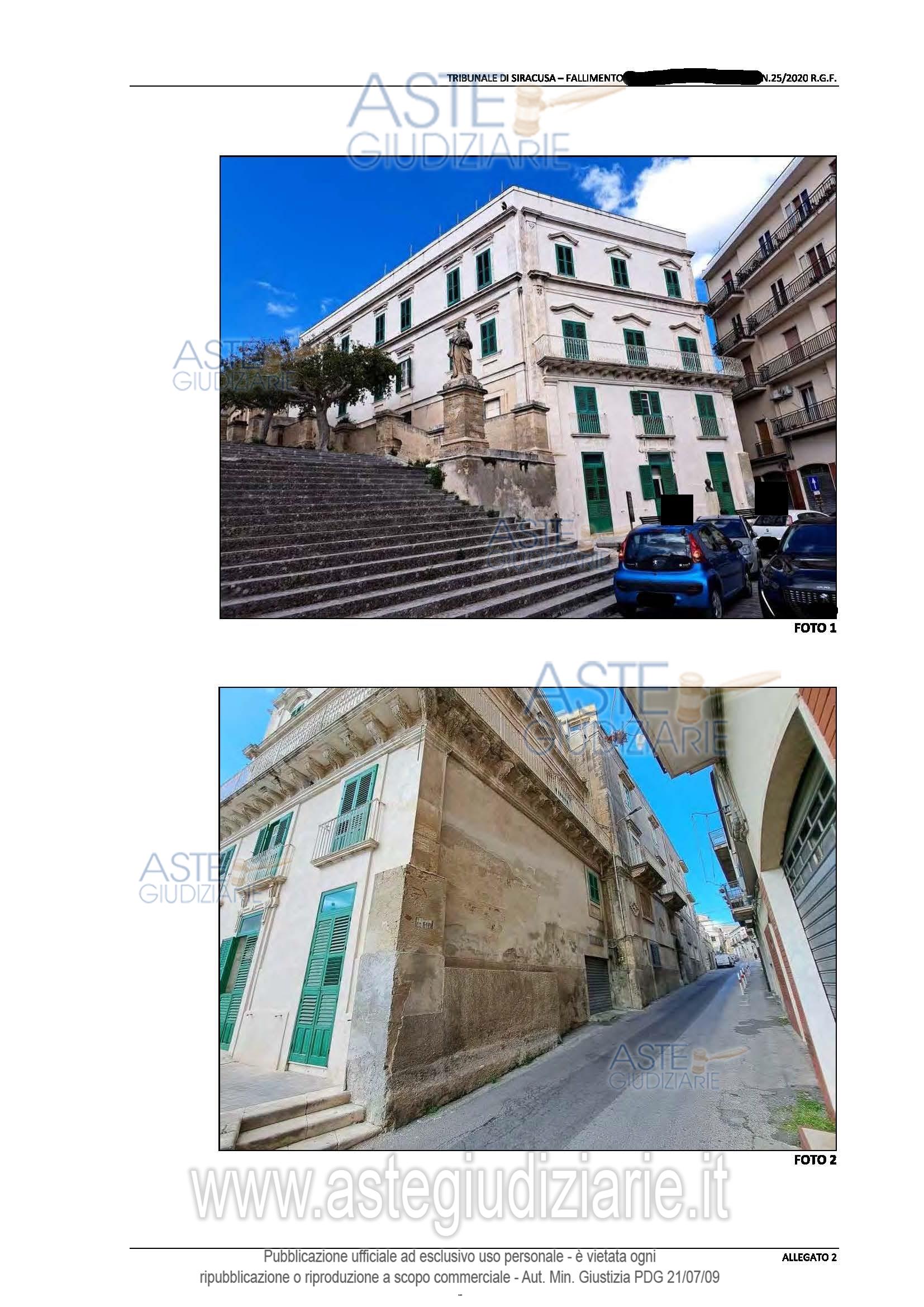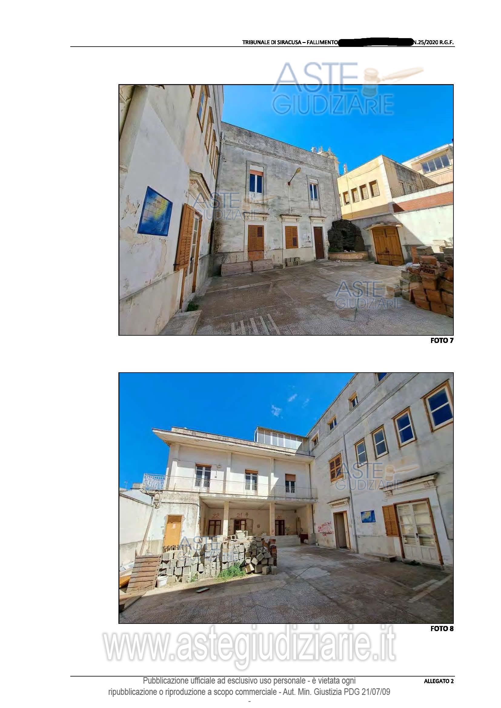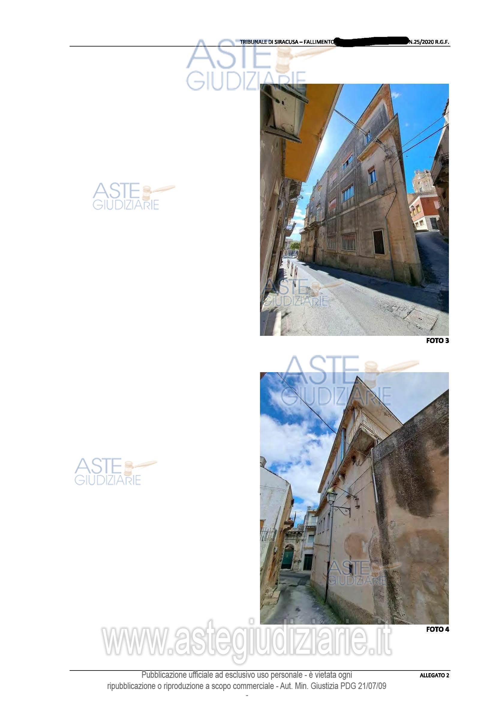 Vendita all'asta Competitiva, con gara telematica sincrona mista - LOTTO UNICO: Edificio di interesse culturale, sottoposto a vincolo, in corso di restauro non ancora ultimato, sito in Modica Via Gesù 5, esteso mq. 2.268 mq circa articolati su cinque livelli fuori terra, con pertinenziale terreno vincolato a parcheggio sito in Via V. Blandino di mq. 1.865 circa; confinante con Via Gesù, Piazza San Giovanni, Via Di Gregorio e scalinata della Chiesa di S. Giovanni (l'edificio) e con Via Blandino e proprietà di terzi (il terreno). Prezzo base € 868.864,00 (offerta minima € 868.864,00). Data vendita 24/03/2026 ore 12:00. Giudice Dott. Nicoletta Rusconi. Curatore Avv. Sabrina Giuliano - Email "avv.sabrinagiuliano@gmail.com"; Tel. 0931412001. Rif. Tribunale di Siracusa - Fallimentare (nuovo rito) n. 25/2020