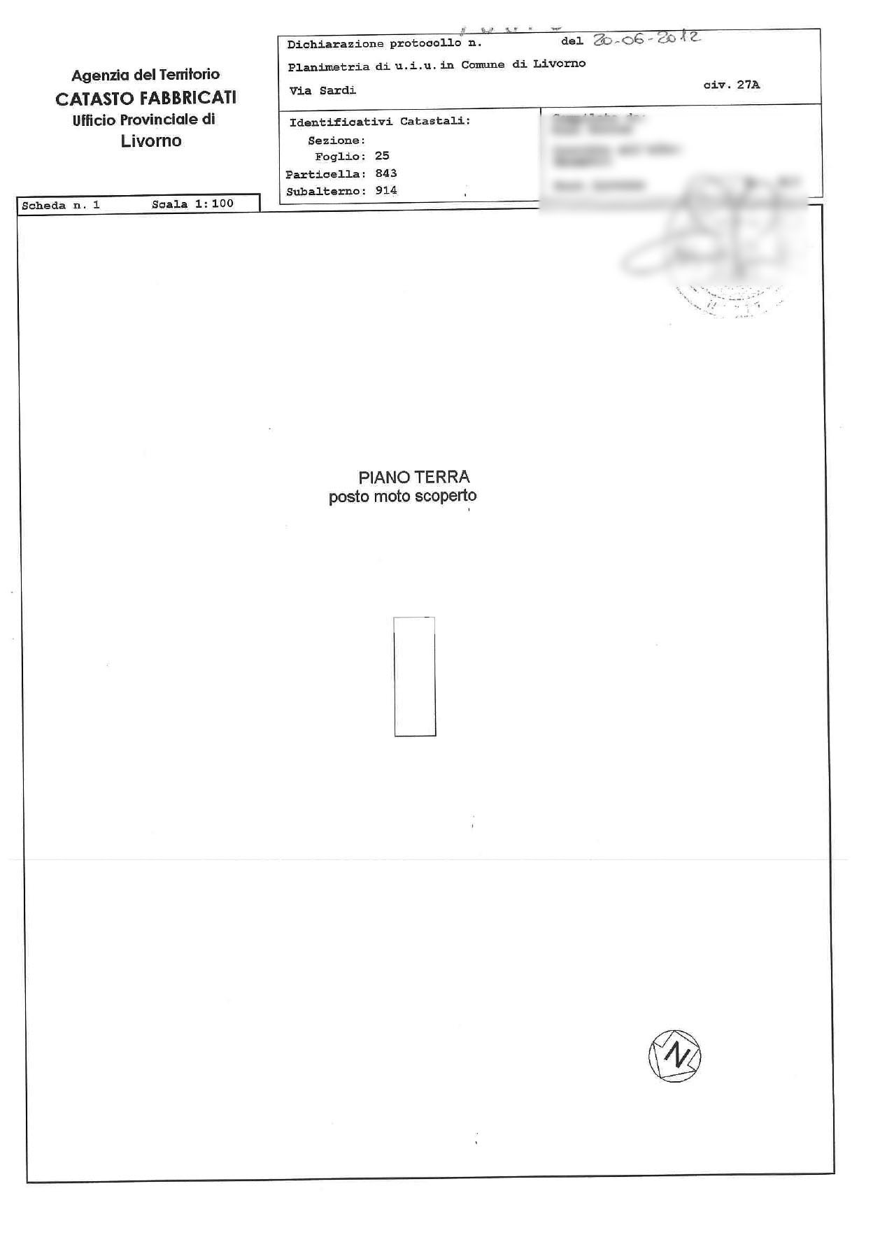 Motorbike parking space on the ground floor of 3 square meters. The successful bidder will be required to pay urbanization charges to the Municipality of Livorno estimated at 224.15 euros (however, it is advisable to obtain an official calculation from the competent Authority). Easement: The connection road of the property to the public road is burdened by an easement of passage in favor of neighboring private real estate units.