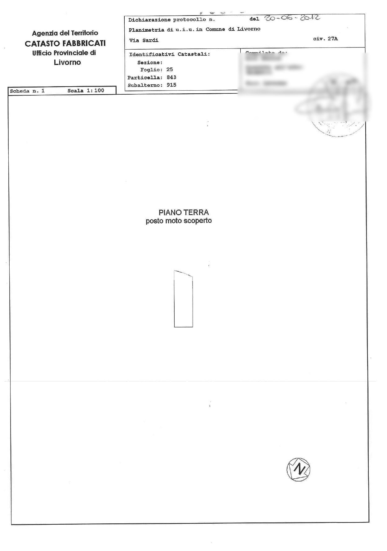 Motorcycle parking spot on the ground floor of 3 square meters. The winning bidder will be required to pay urbanization charges to the Municipality of Livorno estimated at 224.15 euros (however, it is recommended to obtain an official calculation from the competent Authority). Easement: The connection road of the property to the public road is burdened by a right of way in favor of neighboring private properties.